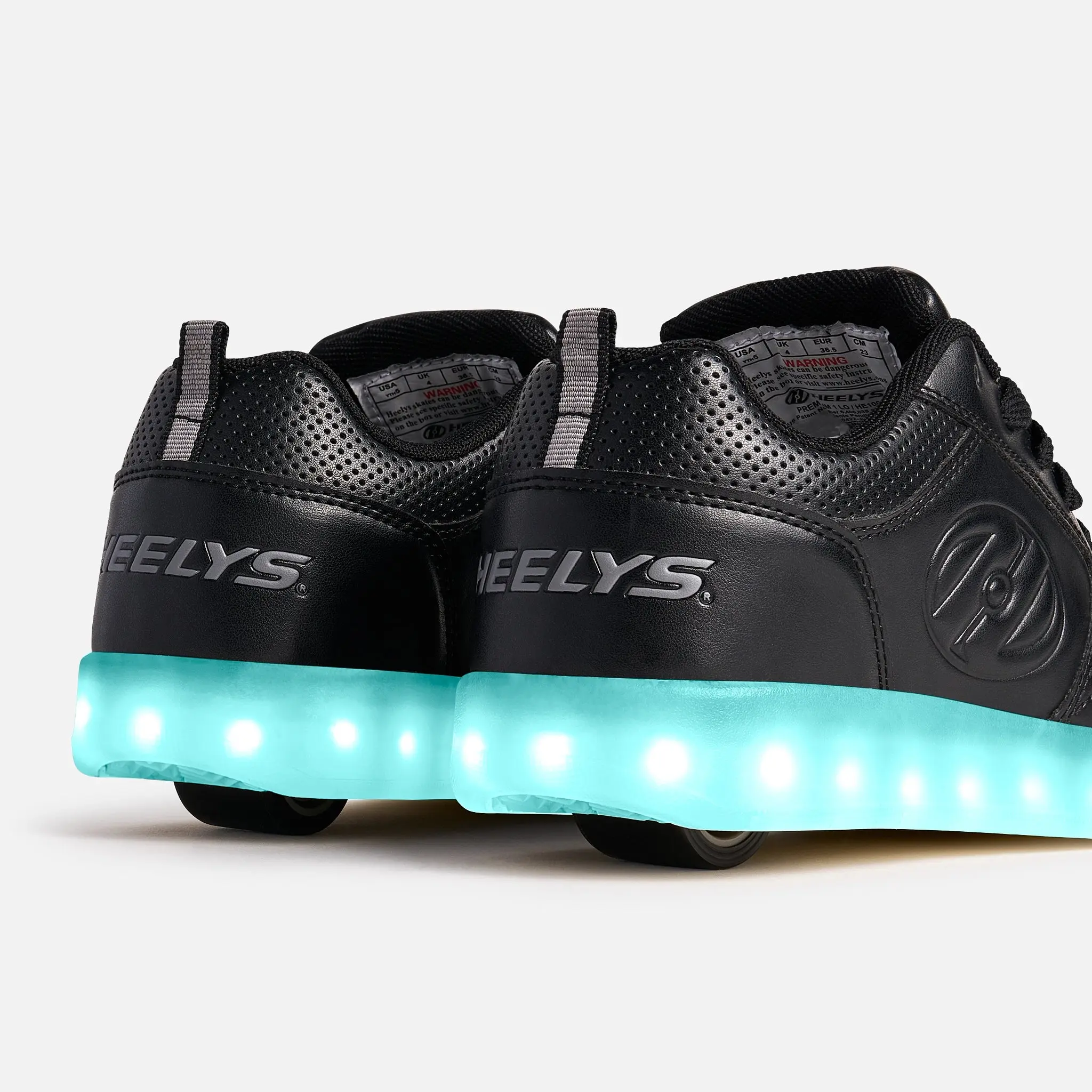 Light UP Heelys Shoes with Wheels! All Black Premium 1 Lo Heelys have lights on the bottom. Recharable with on and off button