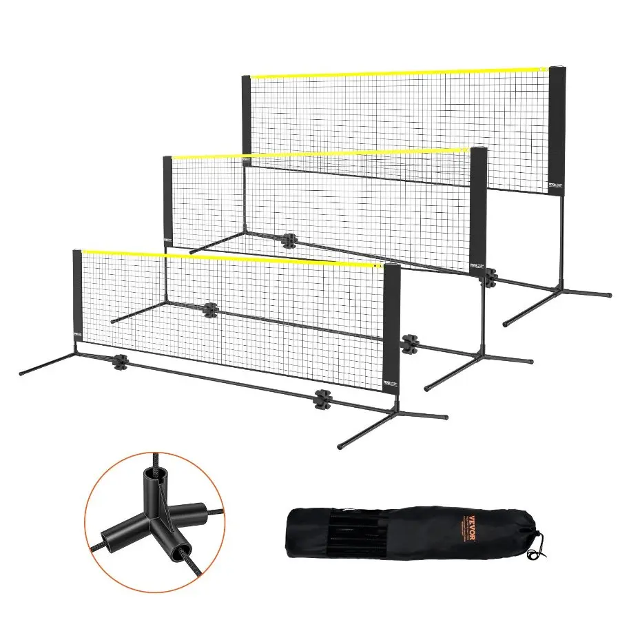 VEVOR Badminton Net, Height Adjustable Volleyball Net, 10ft Wide Foldable Pickleball Net, Portable Easy Setup Tennis Net Set with Poles, Stand and Carry Bag, for Kids Backyard Game Indoor Outdoor UseVEVOR Badminton Net, Height Adjustable Volleyball Net, 20ft Wide Foldable Pickleball Net, Portable Tennis Net Set with Poles, Stand, Bag, Rackets, Nylon Shuttlecocks, Kid Backyard Indoor Outdoor Use