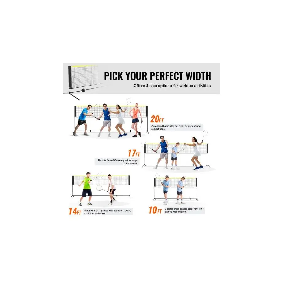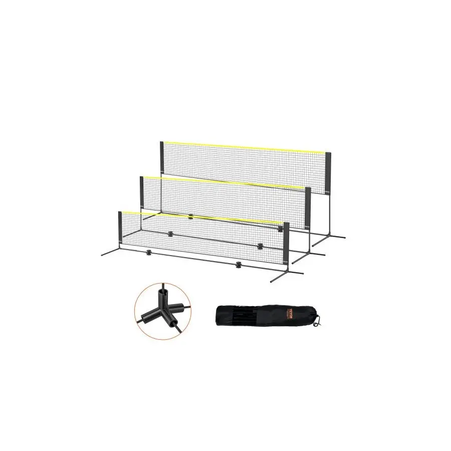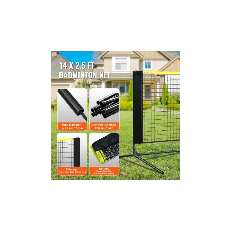 VEVOR Badminton Net, Height Adjustable Volleyball Net, 14ft Wide Foldable Pickleball Net, Portable Easy Setup Tennis Net Set with Poles, Stand and Carry Bag, for Kids Backyard Game Indoor Outdoor UseVEVOR Badminton Net, Height Adjustable Volleyball Net, 10ft Wide Foldable Pickleball Net, Portable Easy Setup Tennis Net Set with Poles, Stand and Carry Bag, for Kids Backyard Game Indoor Outdoor Use