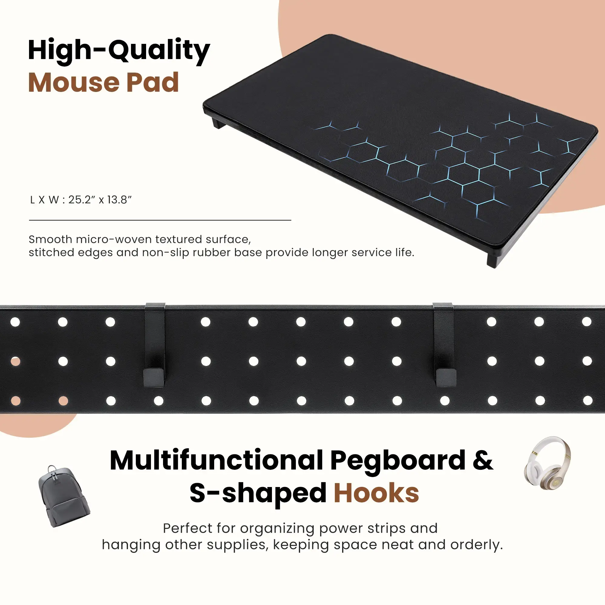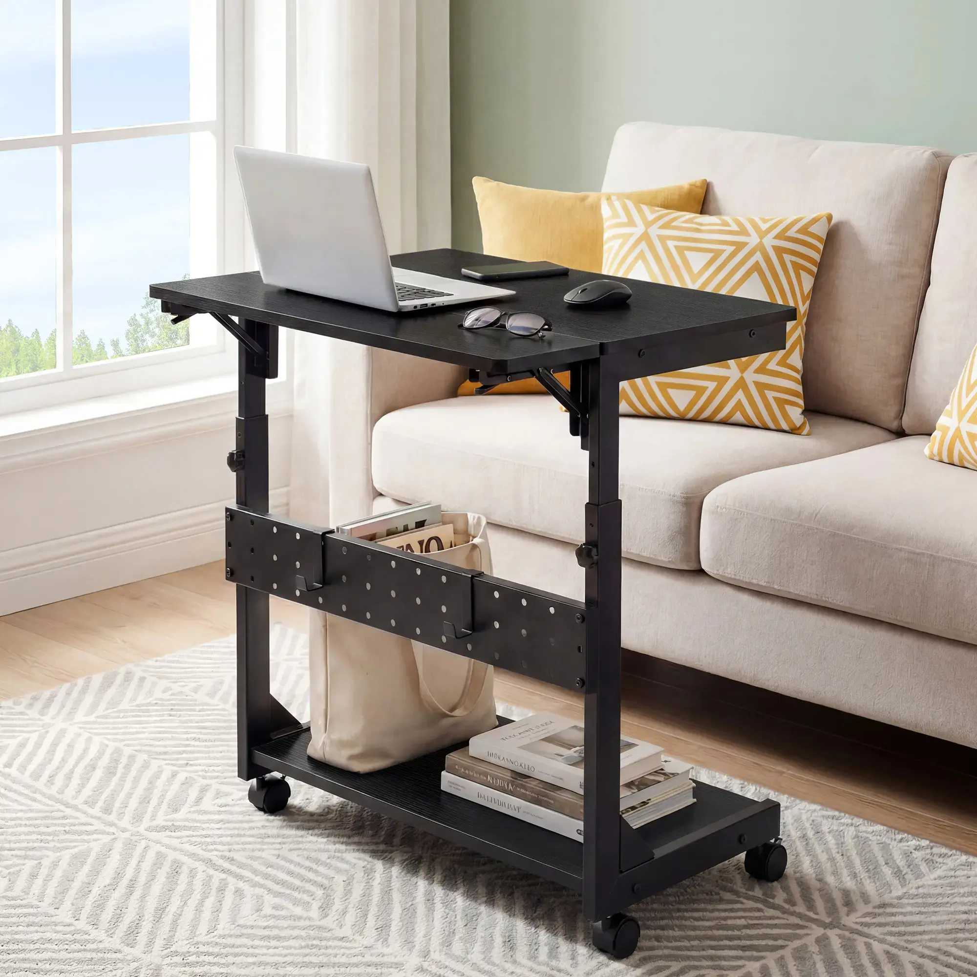 ·Multifunctional Design: Efficient 2-tier design, the bottom shelf stores the computer tower while the top shelf holds printers, smaller PC, mixer, plants, documents, and magazines. Pegboard and S-shaped hooks on back organizes office supplies such as power strips, etc. Mouse pad included, this CPU stand can be used for mouse operation & comfortable arm rest. Can also be used as mobile laptop stand or rolling computer desk that allows you to settle into any place for work like bed and sofa.