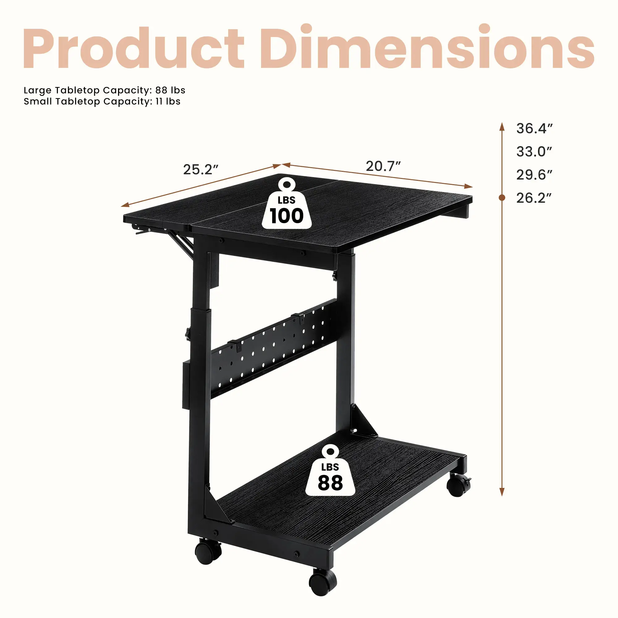 ·Sturdy Construction: EPA TSCA Title VI & CARB Phrase Ⅱ Certified desktop panel with premium anti-scratch finish.Thickened steel frame with powder-coated finish resists corruption to ensure stability and durability, not easy to scratch or deform, no wobbling. The bottom shelf max weight up to 88 LBS, and top shelf 100 LBS.