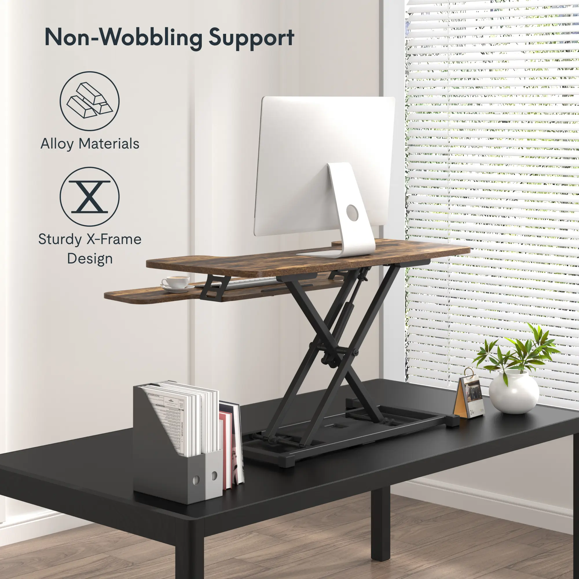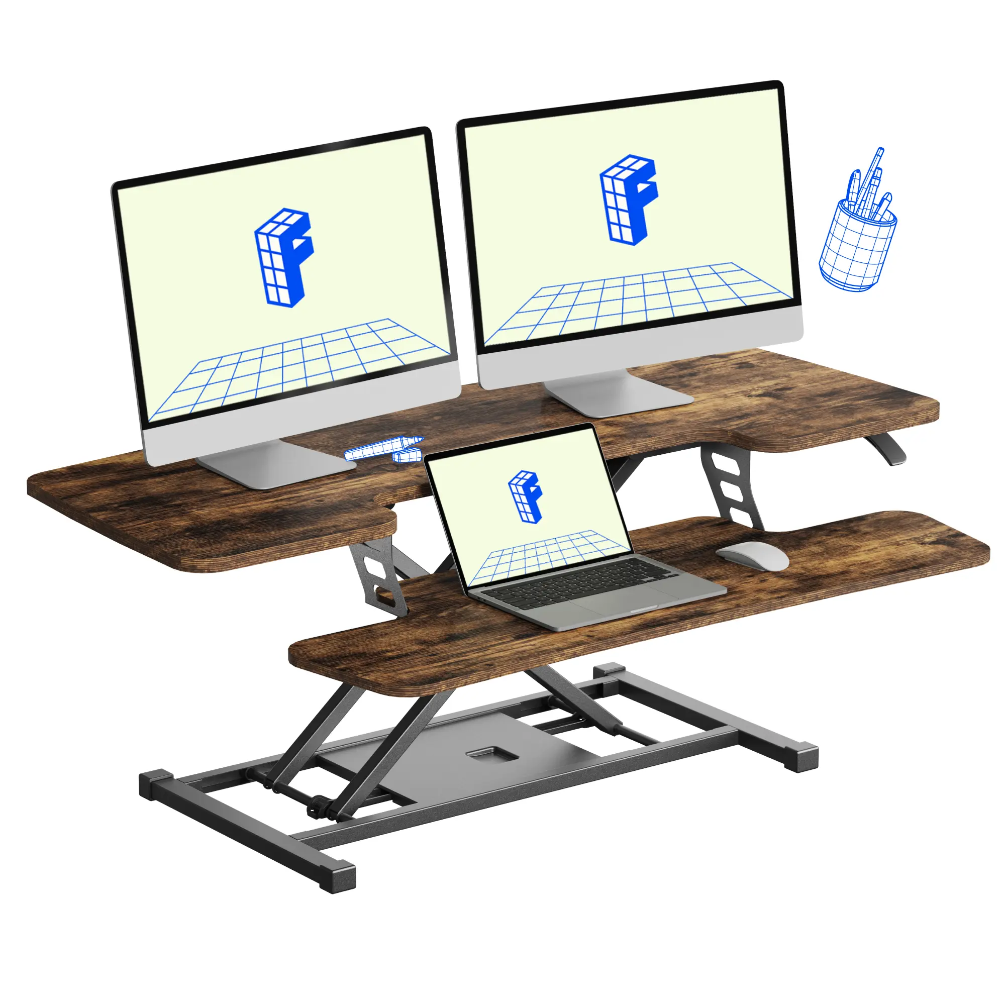 ·Straight Up & Down Movement: This adjustable workstation offers a smooth vertical lift and fold within its own footprint, eliminating the need for additional spatial accommodations often required by other products. This design helps you maintain a healthy balance between sitting and standing throughout your day.