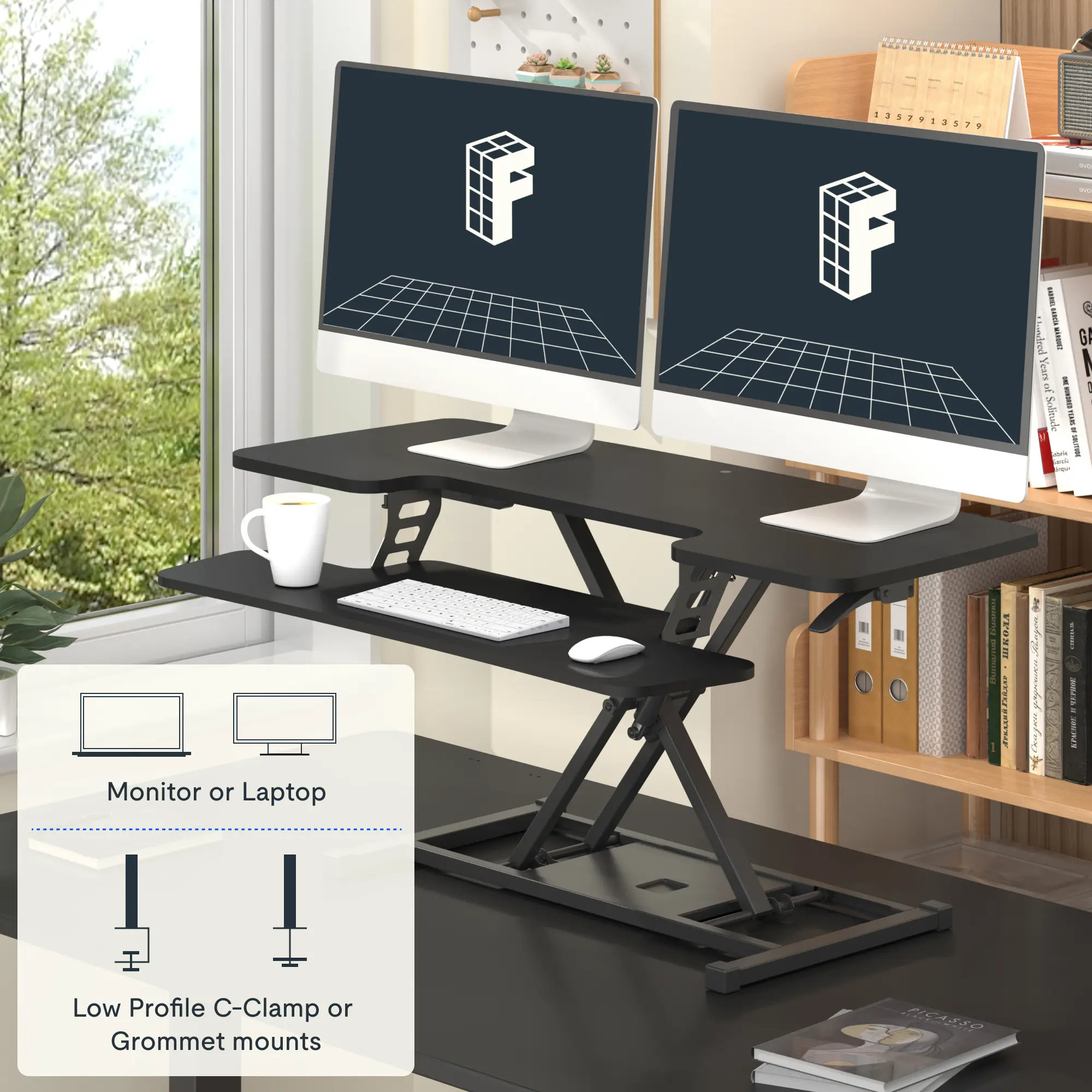 ·Quick-Release, Removable Keyboard Tray: Easy one-step attachment and release gives you the option to use the desk riser with or without the keyboard tray. A wide U-shaped desktop cutout over the keyboard tray enables easy use with a 17" laptop.