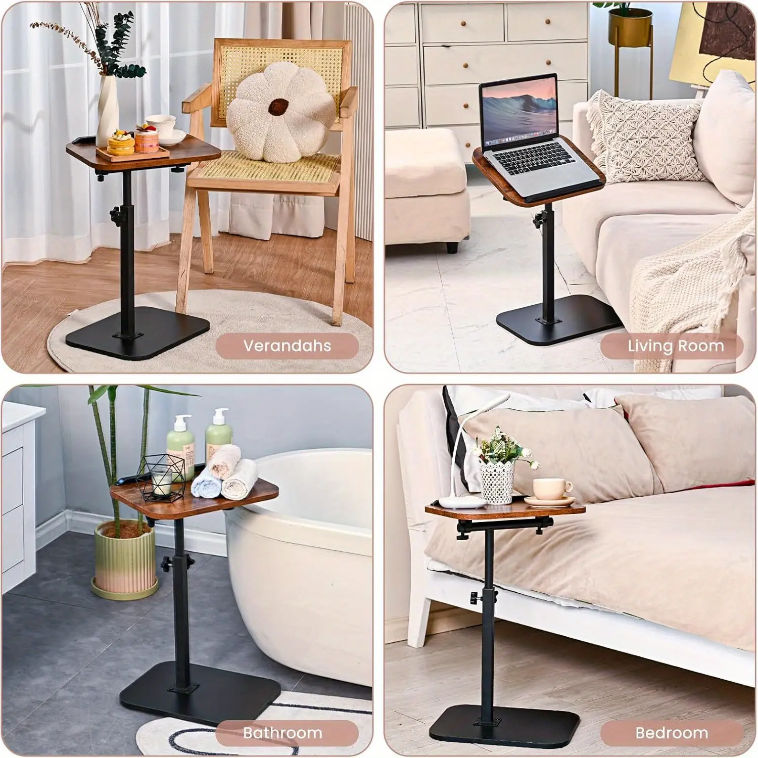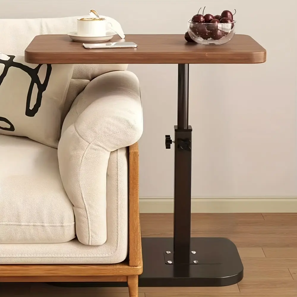 Height-Adjustable Swivel Side Table for Sofas - 360° Rotating C-Shaped Table for Couch Or Bed, Functions As a TV Tray, Laptop Stand, Breakfast Table, Or Study Desk - Durable Black Metal Base for Living Room And Dormitory