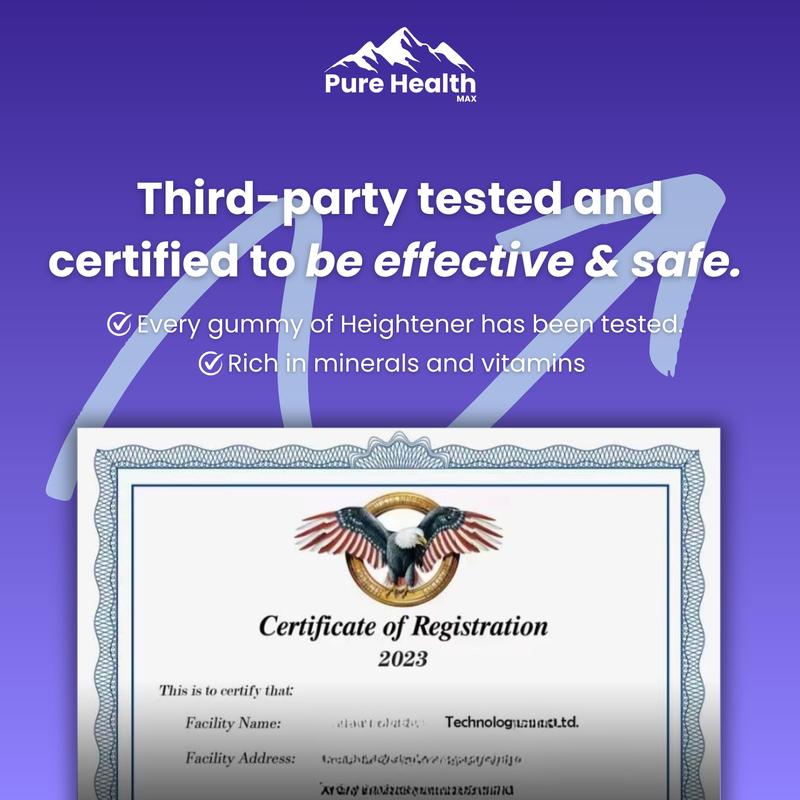 Looking for a tall boost for you, a young adult, teenager or your child? Heightener Height Growth Sleep Gummies are designed to enhance size naturally, making them a great alternative to traditional height enlargement methods. Unlike medicine patches or insoles, these boosters provide a gradual and natural way to maximize bone strength while supporting your daily growth spurt. Whether you’re an athlete, a growing teen, or a parent looking for a safe formula for your kid, these gummies work day and night to promote healthy bone elevation. Struggling with sleep or need an additional nutrition boost? These vitamin-packed supplements include essential minerals, proteins, and slow release nutrients to help fuel your body's growing potential. Ideal for boys, girls, and teenagers, these gummies aid bone health and strength while ensuring you get the nutrients you need to thrive. The first day you take these gummies, you'll notice a difference in your rest and recovery. The unique blend of ingredients works to elevate your strength and focus, ensuring that your body is in balance for maximum height gains. Unlike protein powders, pills, or capsules, these delicious gummies make it easy to incorporate height-maximizing supplements into your daily routine. No need to worry about fitting shakes, powders, or multiple pills into your schedule—our gummies are a simple and enjoyable solution for anyone looking to increase their height, improve their sleep, and support their overall well-being. Whether you're a boy, girl, teenager, or athlete, these supplements offer a positive way to enhance your natural height potential. One bottle on our monthly subscription will make sure you free your body for growth at any years old. Pairing with a balanced diet such as milk filled with lots of calcium, our new Heightener Gummies will help anyone see height peaks from athletes to a baby enter a new chapter of their height growth plus it increases your sleep performance. Try Heightener Height Growth Sleep Gummies today and experience the best in elite height enhancement. With a medical formula and with research for all young ages, you can feel confident knowing you're giving your body the boost it needs to reach peak heights.