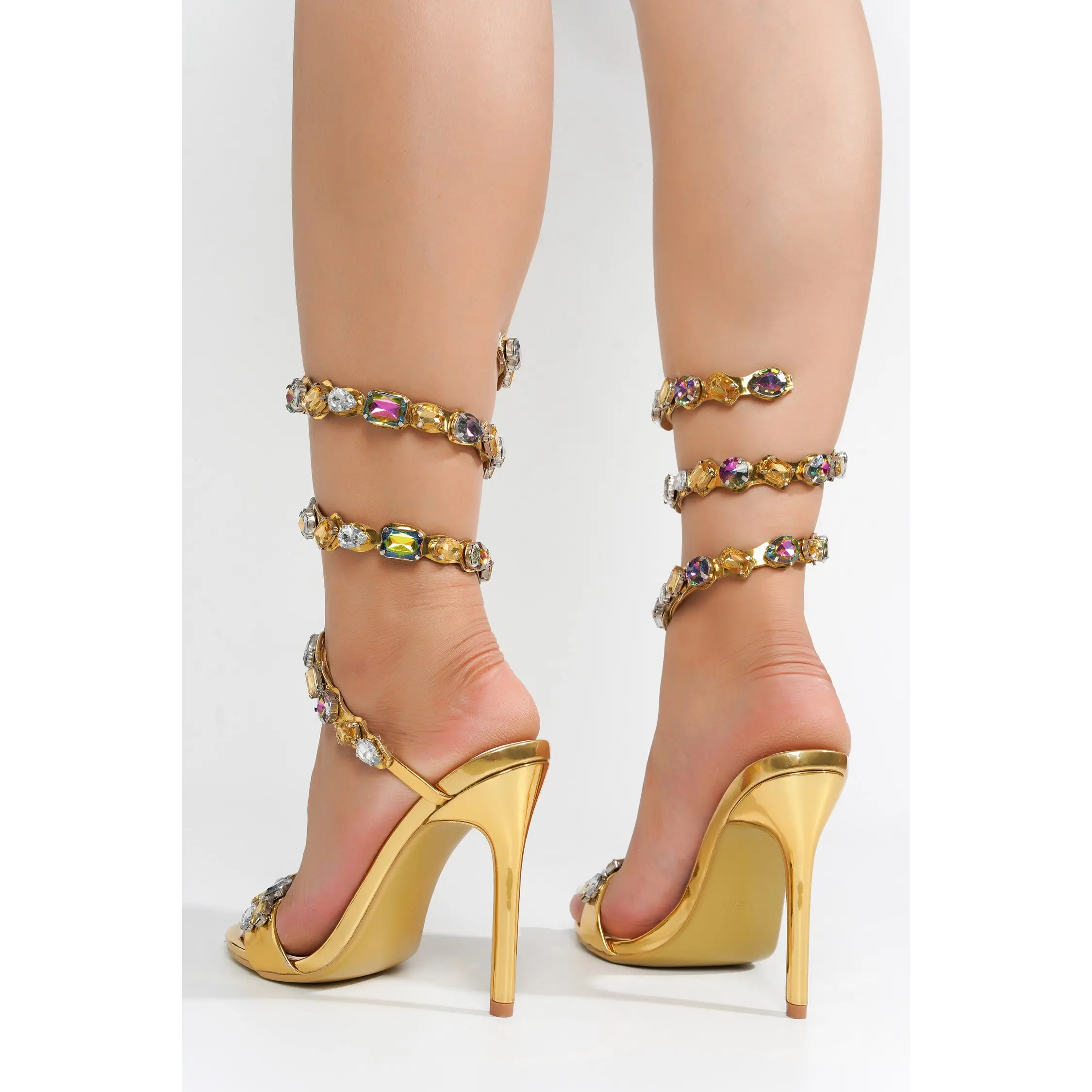 5. Helia Gem-Trimmed Wrap-Around High Heels - Gold