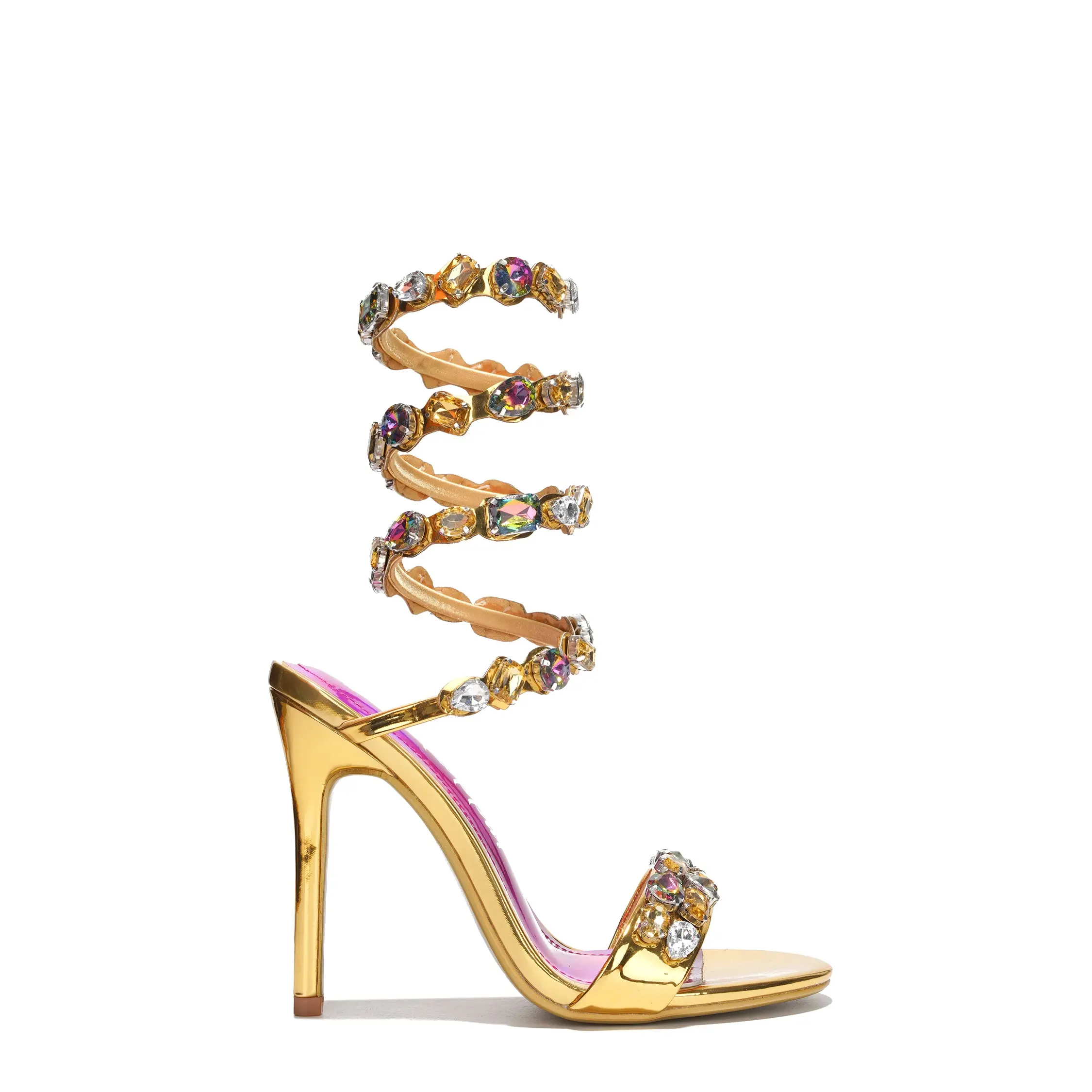 Helia Gem-Trimmed Wrap-Around High Heels - Gold