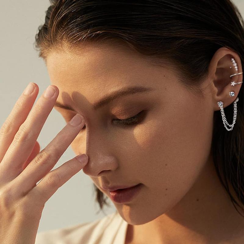 ·【Excellent Gift】Chic cartilage earring set with chain dangle, regardless of age and gender, an essential jewelry collection for every woman and man, perfect Graduation Gift, Christmas gift, Valentine's Day Gift, birthday gift for yourself, your daughter, niece, mom or best friend.
