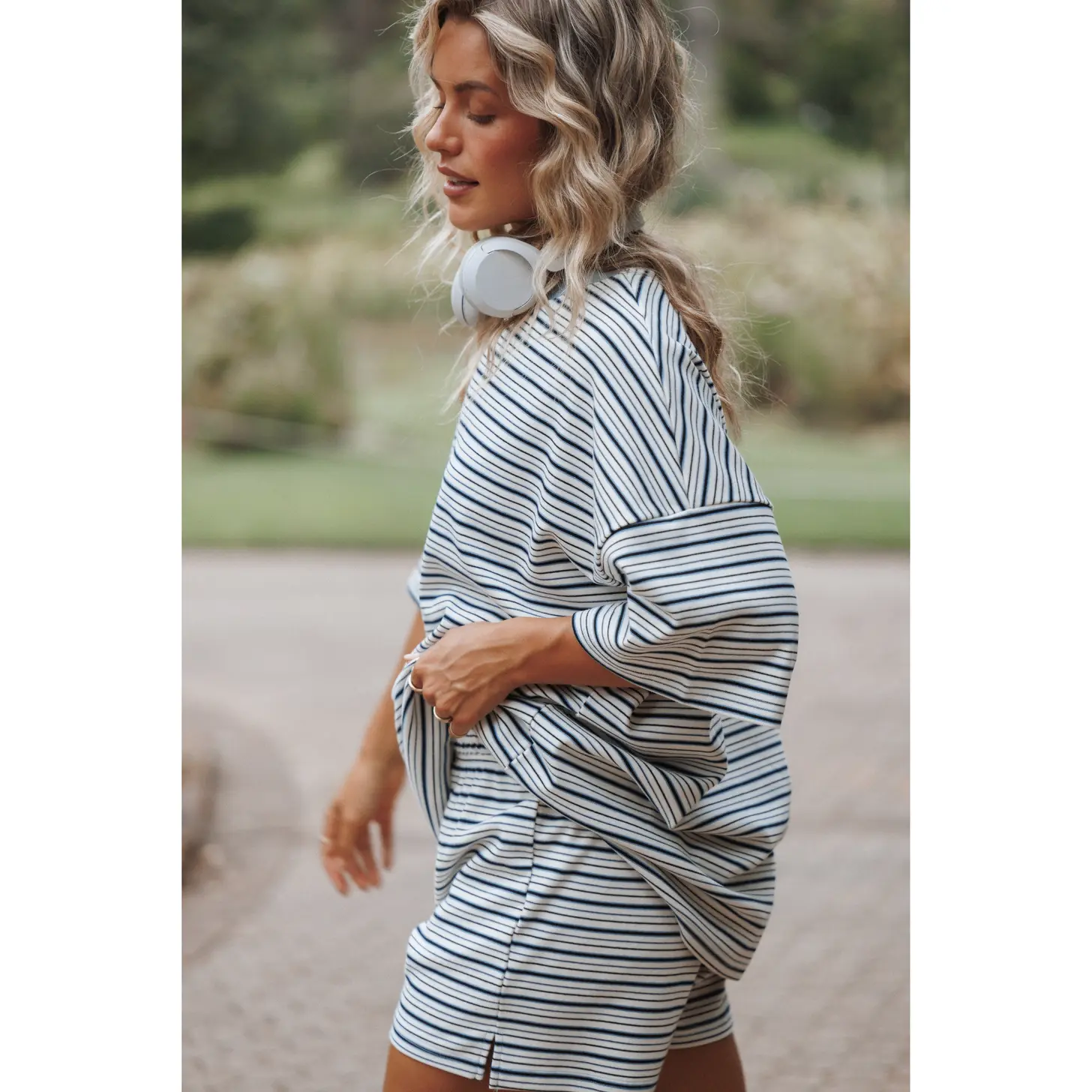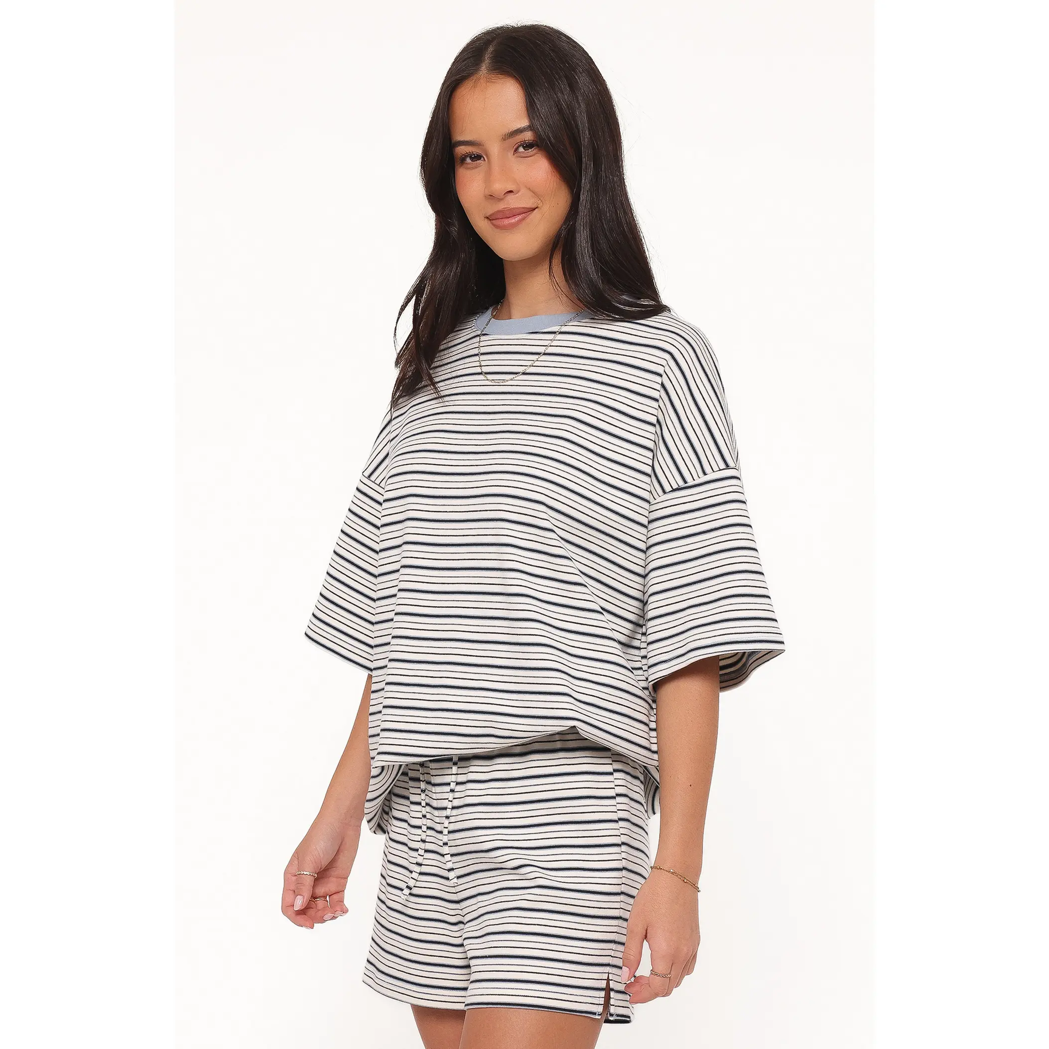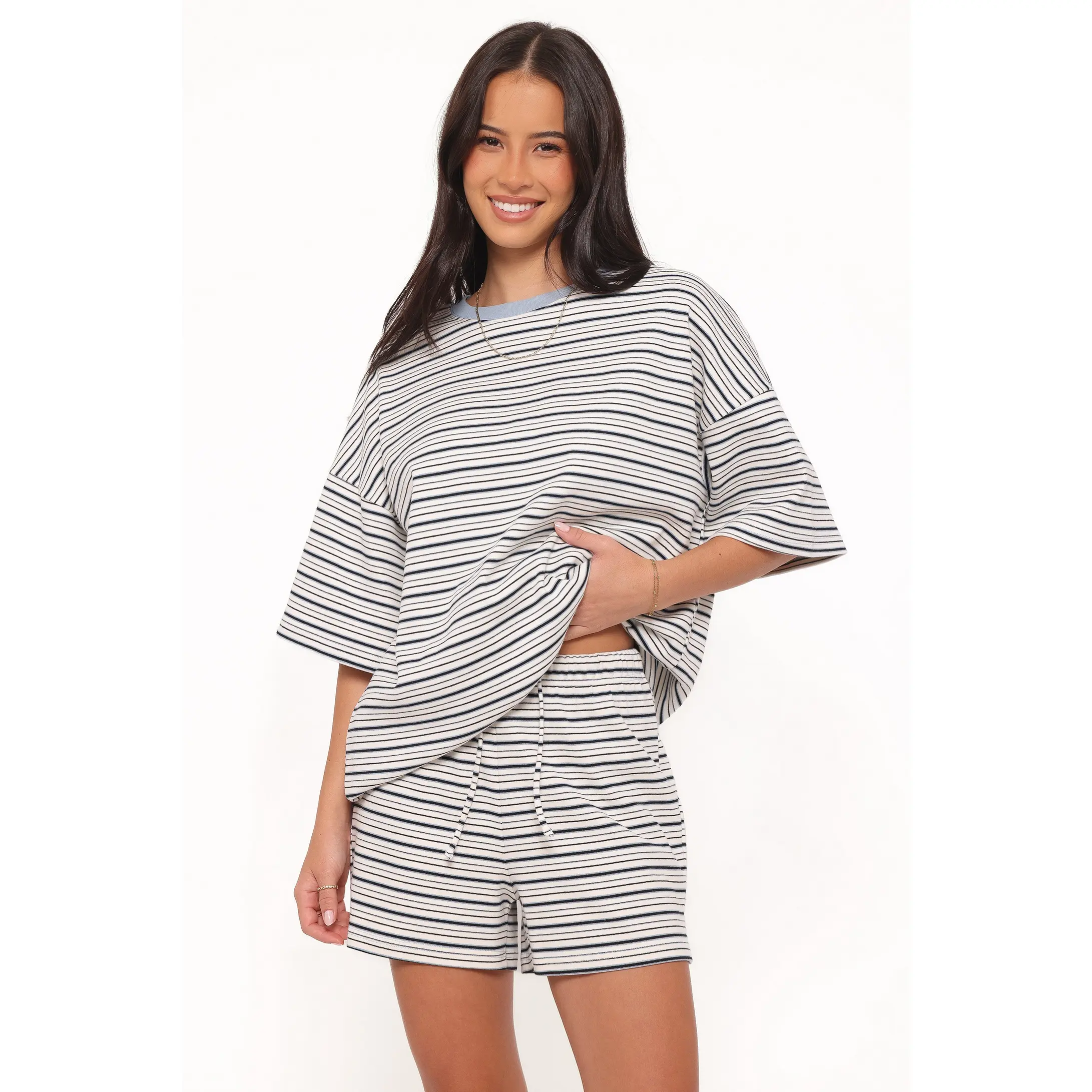 Hellen Stripe Short Set - Blue/Cream Stripe