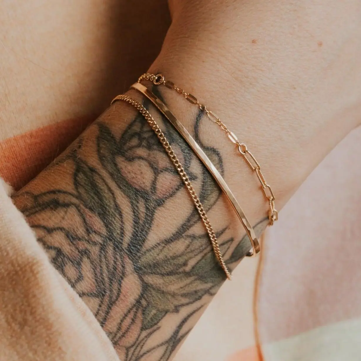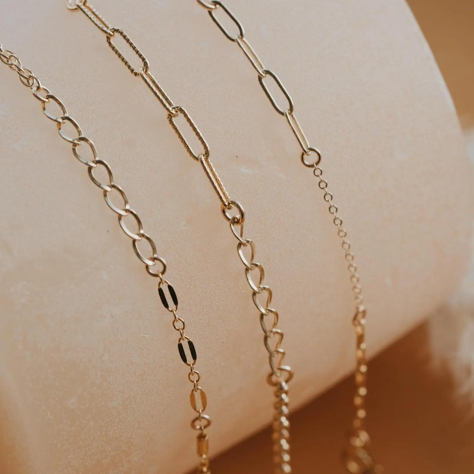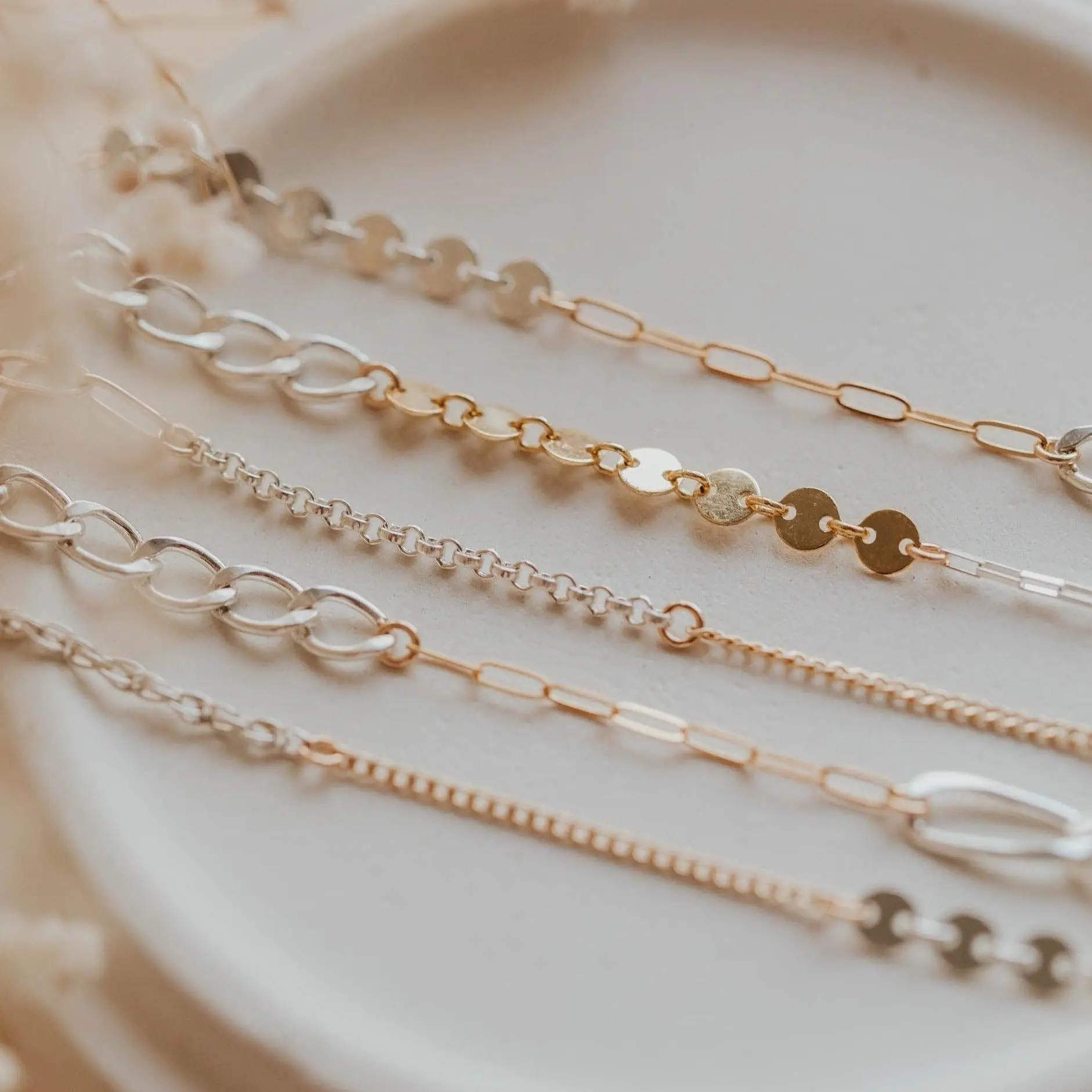 I love the eclectic creativity of combining several unique chain styles into one, delicate, feminine bracelet. My everyday favorite!