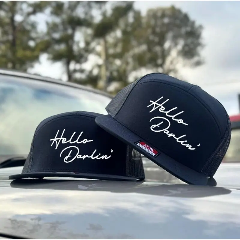 Bring some old-school flair to your wardrobe with the Hello Darlin' 7-Panel Trucker Hat Collection, a perfect blend of style and personality!