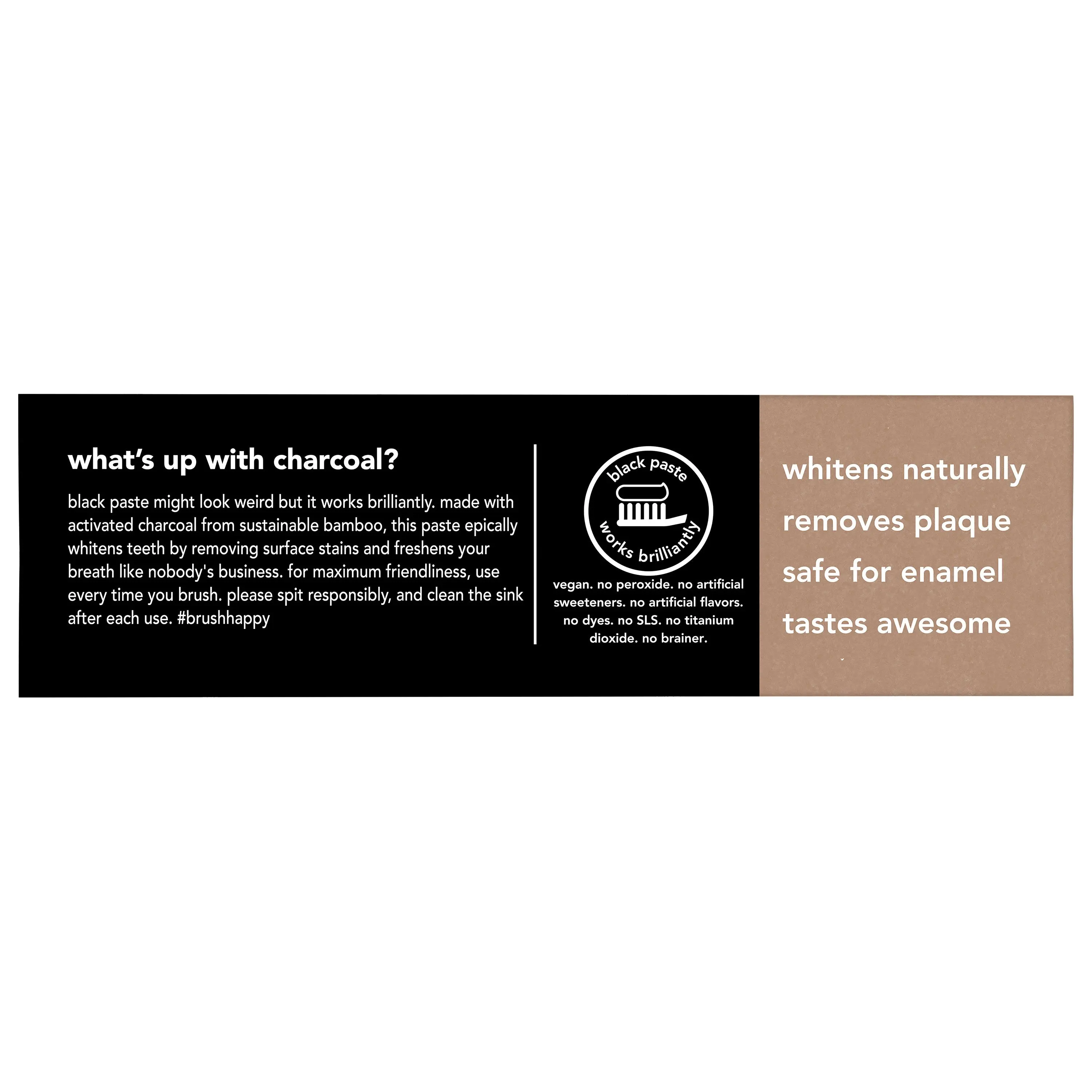 This fresh mint toothpaste with activated charcoal whitens naturally (with natural whitening ingredients to remove surface stains) while also helping remove plaque when brushing The twin pack includes two 4.0 oz tubes, totaling 8.0 oz (226 g). It contains no peroxide, artificial sweeteners, flavors, titanium dioxide, dyes, or SLS. It's vegan and not tested on animals.