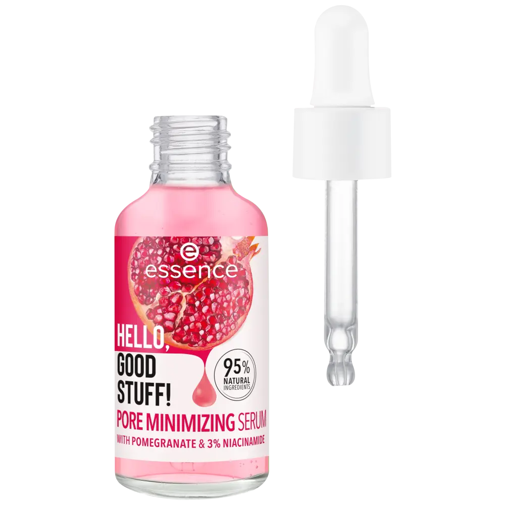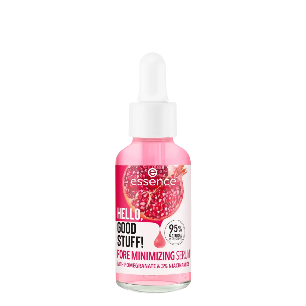 Achieve a visibly refined complexion with the essence Hello, Good Stuff! Pore Minimizing Serum. Formulated with 95% natural ingredients, including pomegranate fruit water and 3% Niacinamide, this serum leaves your skin soft and supple while visibly reducing the look of pores!