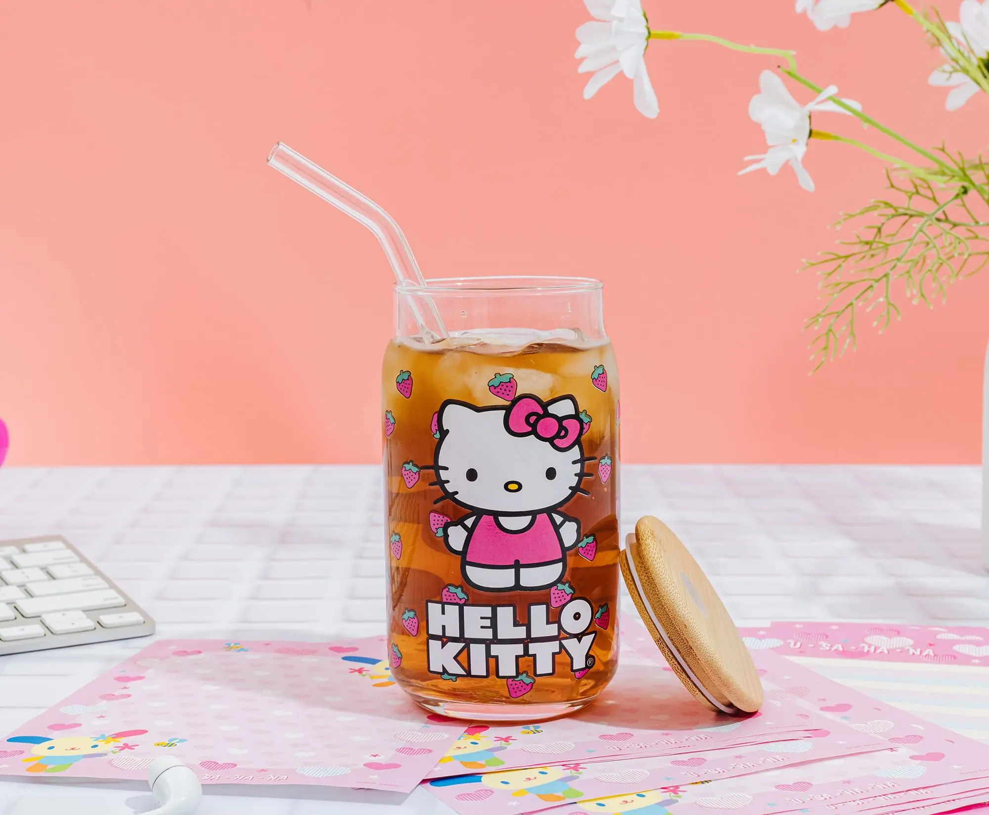 5. Sanrio Hello Kitty Strawberry 16-Ounce Glass Tumbler With Bamboo Lid and Straw
