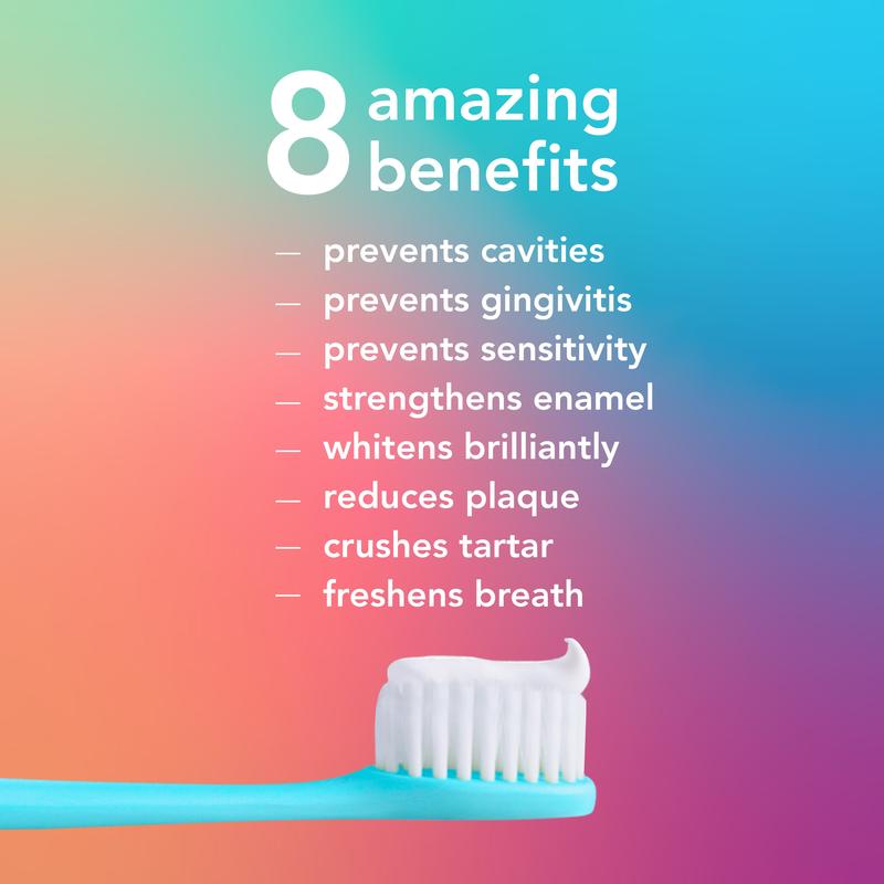 Say hello to your new squeeze, the totally epic Hello 8 in 1 mighty multi-tasker fluoride toothpaste. This SLS-free toothpaste is thoughtfully formulated to help crush cavities, tartar, plaque, gingivitis, and tooth sensitivity. It whitens your teeth and strengthens enamel.