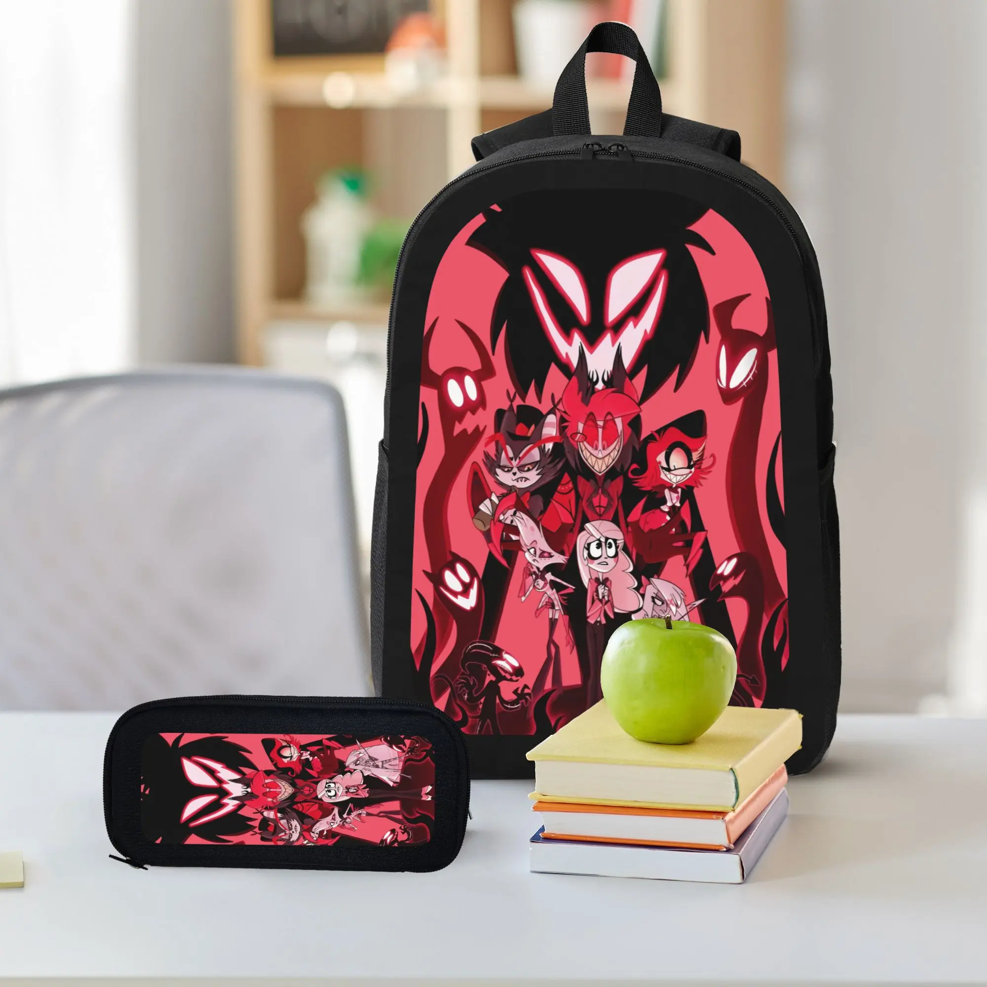 Helluva Anime Character Backpack 3-Piece Set Student Backpack Pencil Case & Lunch Bag Bundle with Vibrant Artwork for Anime Fans Complete Practicality and Style