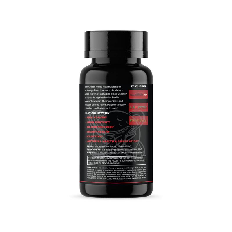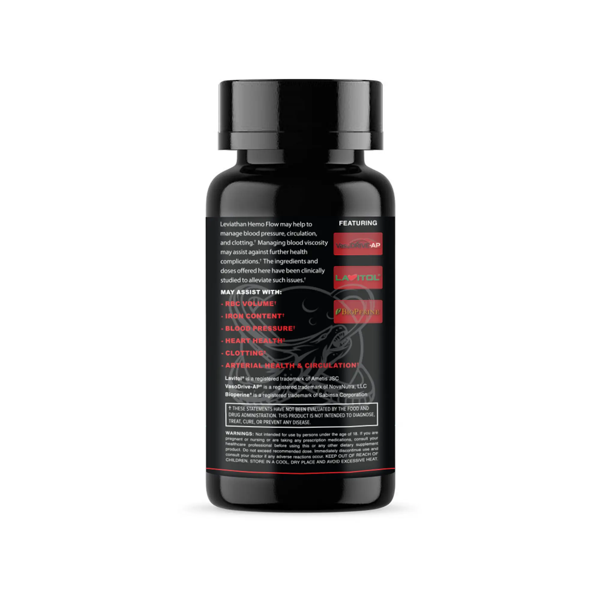 Leviathan Nutrition Hemo Flow is a specialized vasodilation supplement designed to enhance blood flow and improve overall performance. It contains VasdriveAP for effective blood flow support. The product comes in convenient capsules for easy consumption. Proudly made in the US by Leviathan Nutrition.
