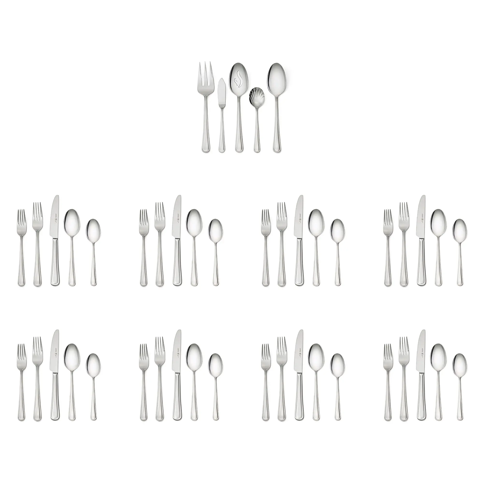 This set features 8 x 5-piece place settings plus 5 key serving pieces. Each piece is fabricated from high-quality 18/10 stainless steel for optimal corrosion resistance with a luster finish. The flatware features carefully polished surfaces and edges which both look and feel good. As one would expect from a longstanding cutlery company, the knives offer superior cutting precision. Produced in compliance with Henckels International s strict quality standards, each spoon, knife and fork offers everyday durability. Easy to care for, the dishwasher safe flatware will beautify your tabletop for many years to come.