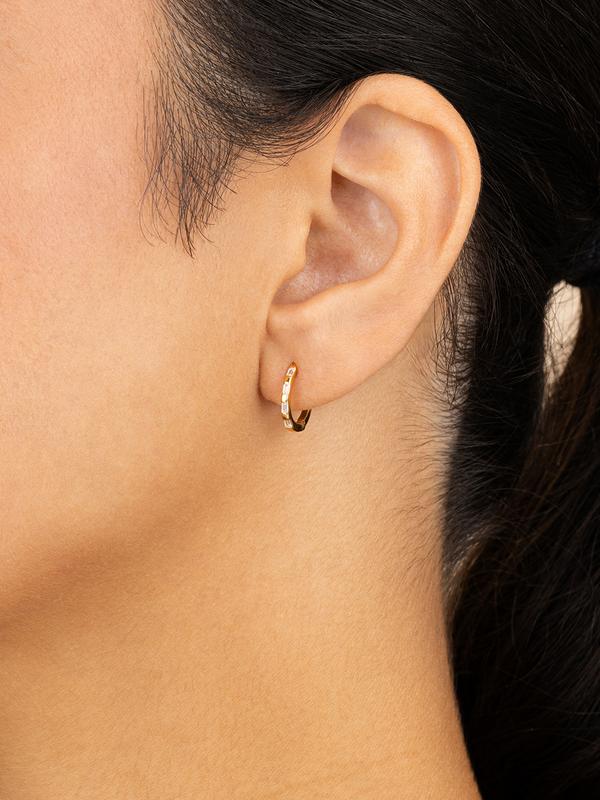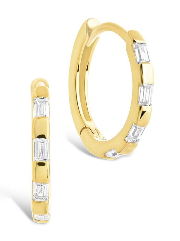 5. Sterling Silver Henley CZ Baguette Micro Hoop Earrings