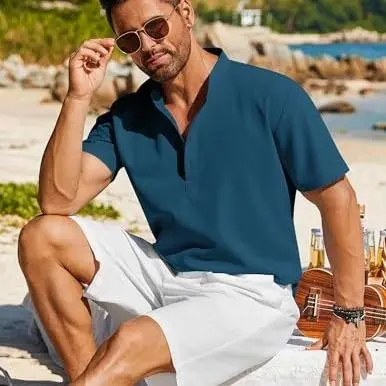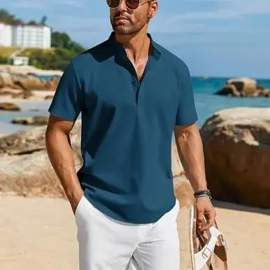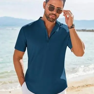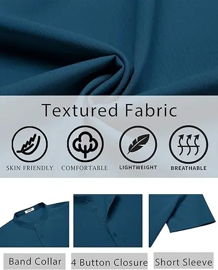 ·Stylish Design: Mens T-Shirts feature band collar, short sleeve, and button-down closure; this timeless shirt combines elegance and comfort, making it an essential addition to any gentleman's wardrobe