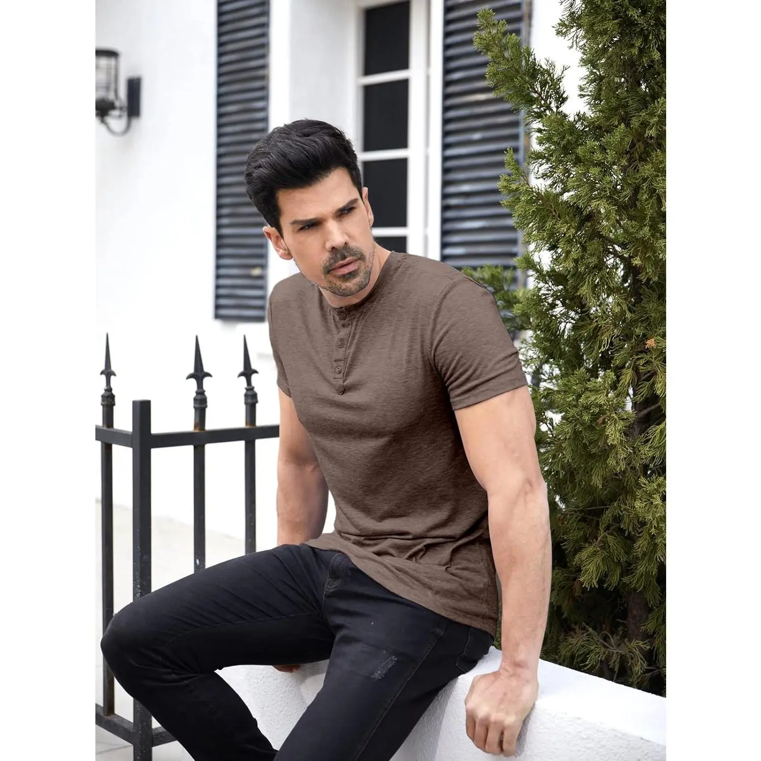5. PASLTER Men Short/Long Sleeve T-Shirt Casual Solid Color Button-up Henley Shirt V Neck Tee Tops M4B039 Menswear Streetwear