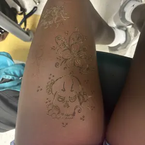 Absolutely loved this! My design lasted about a week, week and a half, and I loved it. Definitely worth it! It does look really orange at first when it peels, but does get darker after a little bit.(I don't have a pic of it completely developed, but it gets a bit darker than the last photo)