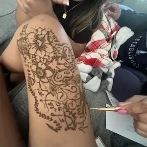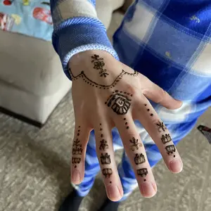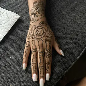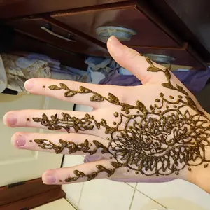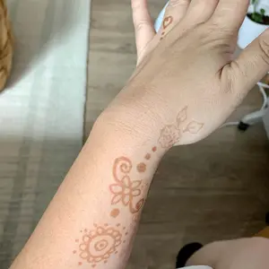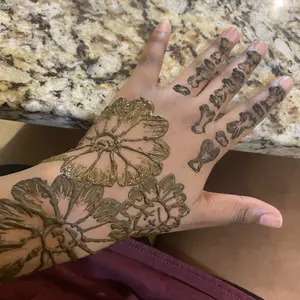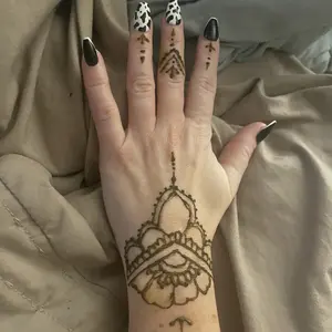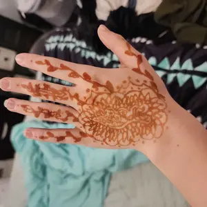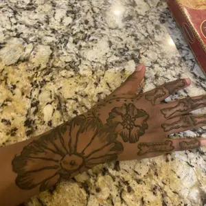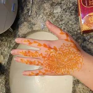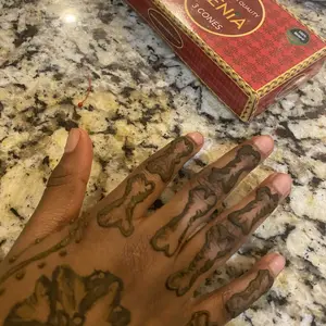 This henna was very easy to work with, the cones look small but each one surprisingly holds a lot of henna! This was my first time doing henna but I’ve gotten very good! The stain gets darker after a day or two so the orange color ends up more brown