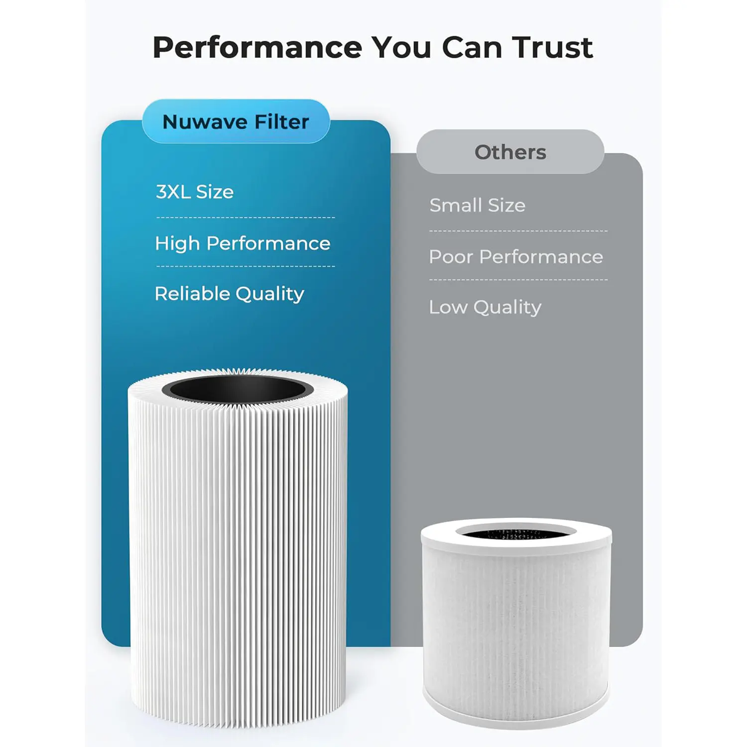 I like the idea of not spending $300 every 6 months to replace filters on my other brand air purifier. I amazed how well the Nuwave Oxypure Zero works! Yes, I am going to save money by not having to buy filters. This is a great product and I will be buying another one for the bedroom. It's quiet if you want it to be, and it lets you know when it's detects something in the air by light indicators. Be sure to read instructions on cleaning filters carefully, this very important! Keep your directions near by. Thank You Nuwave. From Dan, Hays Ks