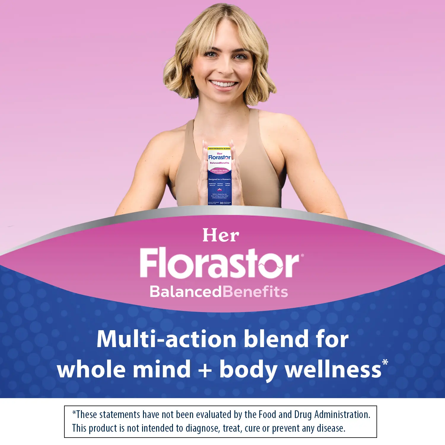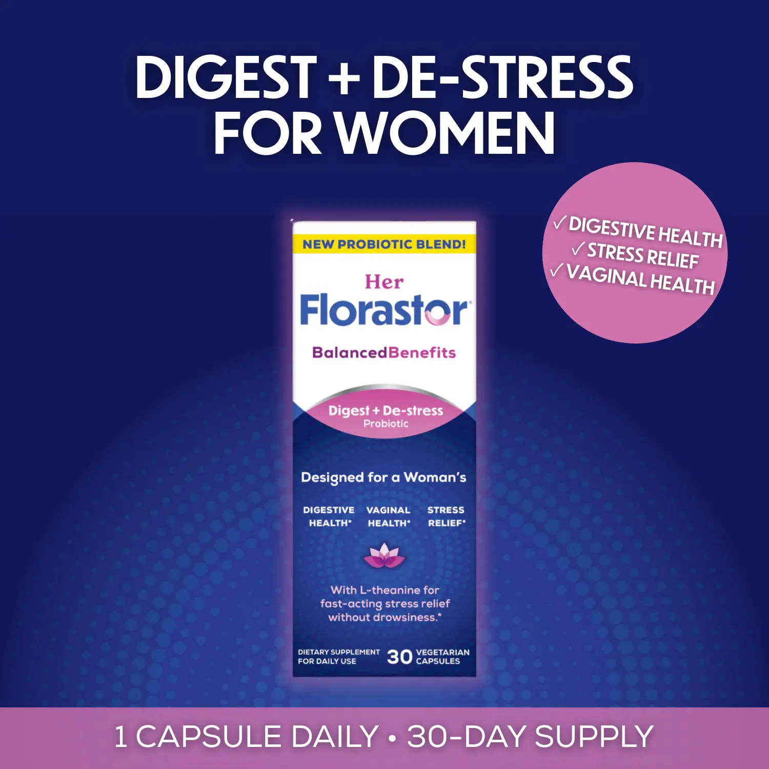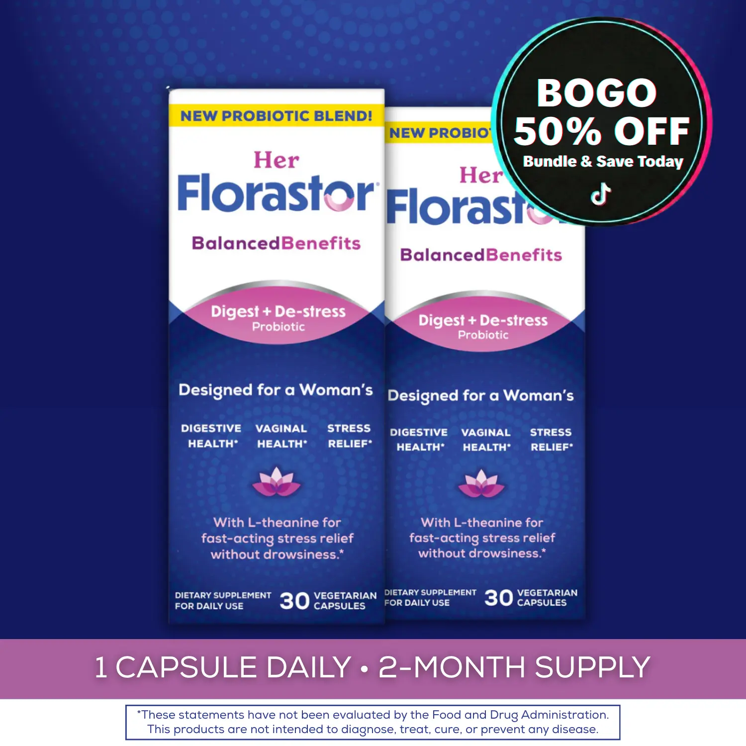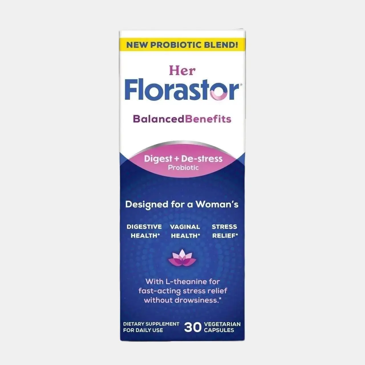 Stress can impact your whole body—including your microbiome. Florastor Her combines probiotics with L-theanine to deliver calm, balanced energy while strengthening gut and vaginal health. This innovative formula is designed specifically for women to support whole-body wellness, every day.*