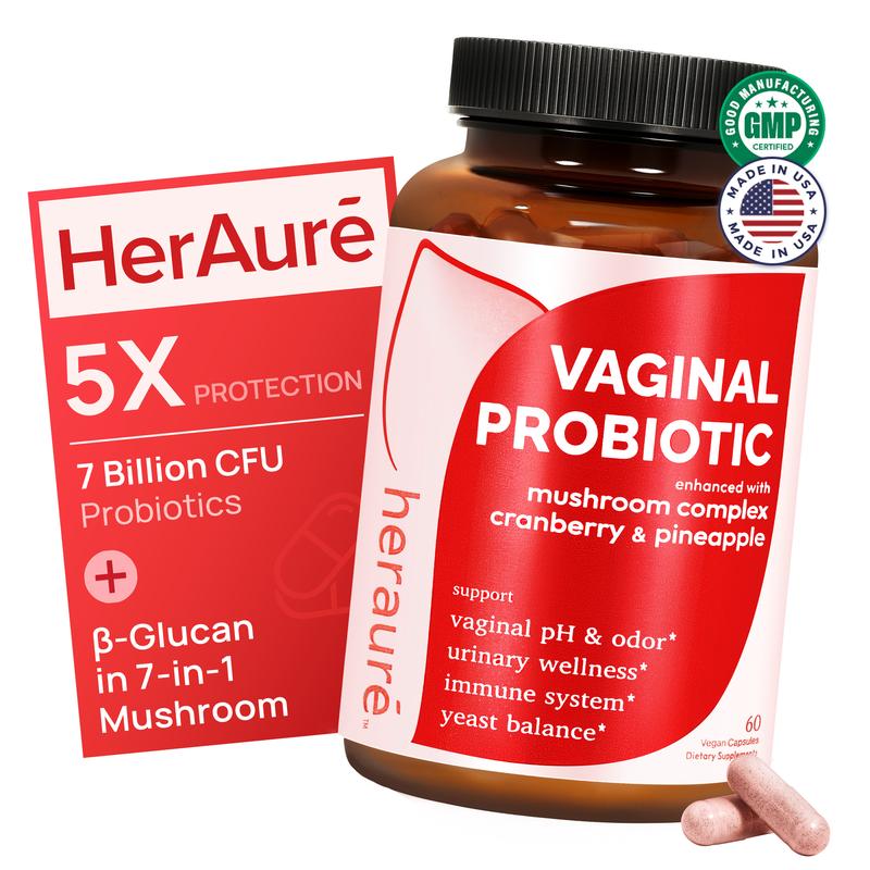 HerAuré Feminine Probiotic is a targeted daily formula supporting women’s intimate wellness. It maintains healthy flora and immunity, supports pH balance, reduces odor, manages infections and BV, and promotes yeast health. This blend strengthens the intimate microbiome for daily comfort and confidence. Vegan, gluten-free, and colorant-free, it's crafted for optimal health.
