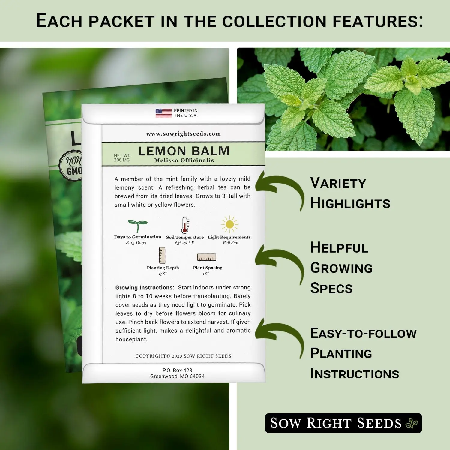 Our 15 herb collection contains large full color packets of popular culinary herbs including Genovese Basil, German Chamomile, Common Chives, Cilantro, Dill, Lavender, Lemon Balm, Marjoram, Mint, Oregano, Flat Leaf Parsley, Sage, Thyme, Opal Basil, and Bergamot.