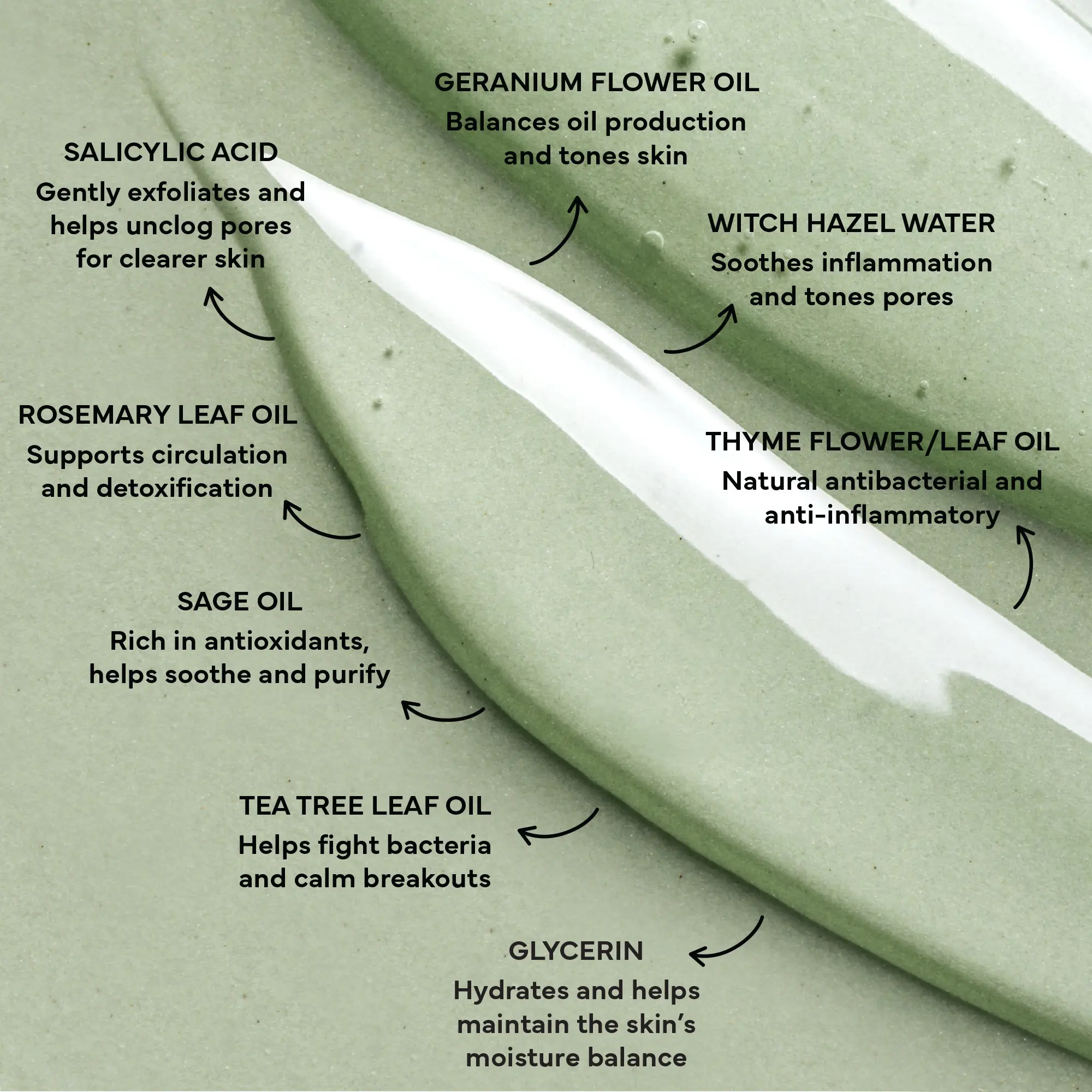 IngredientsWater / Eau / Aqua,Sodium Coco-Sulfate,Decyl Glucoside,Cocamidopropyl Betaine,Glycerin,Propanediol,Sodium Chloride,Citric Acid,Phenethyl Alcohol,Hamamelis Virginiana (Witch Hazel) Water,Potassium Sorbate,Melaleuca Alternifolia (Tea Tree) Leaf Oil,Sodium Benzoate,Sodium Gluconate,Salicylic Acid,Salvia Officinalis (Sage) Oil,Thymus Vulgaris (Thyme) Flower/Leaf Oil,Rosmarinus Officinalis (Rosemary) Leaf Oil,Pelargonium Graveolens (Geranium) Flower Oil,Lavandula Angustifolia (Lavender) Oil,Benzoic Acid