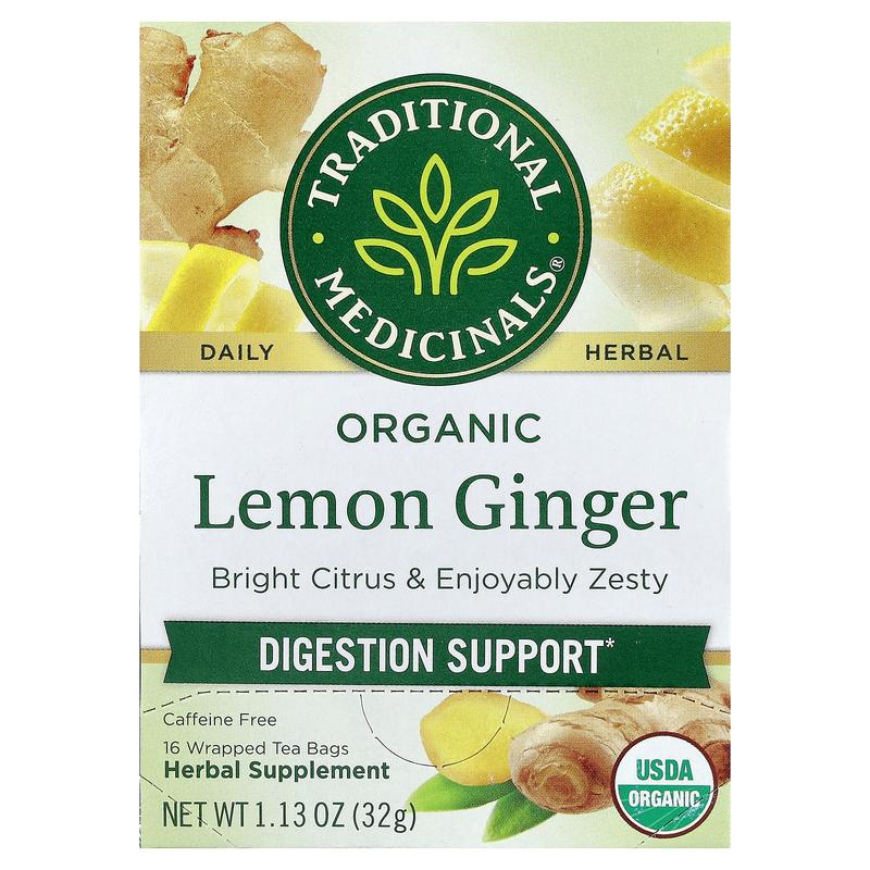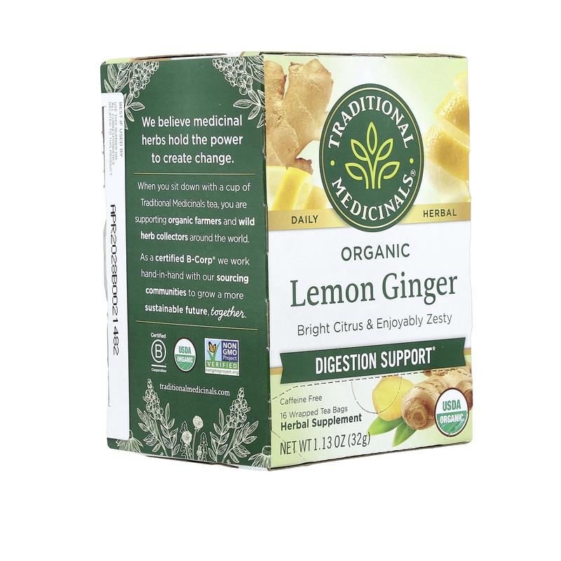 5. Traditional Medicinals Organic Lemon Ginger, Caffeine Free, 16 Wrapped Tea Bags, 1.13 oz (32 g)