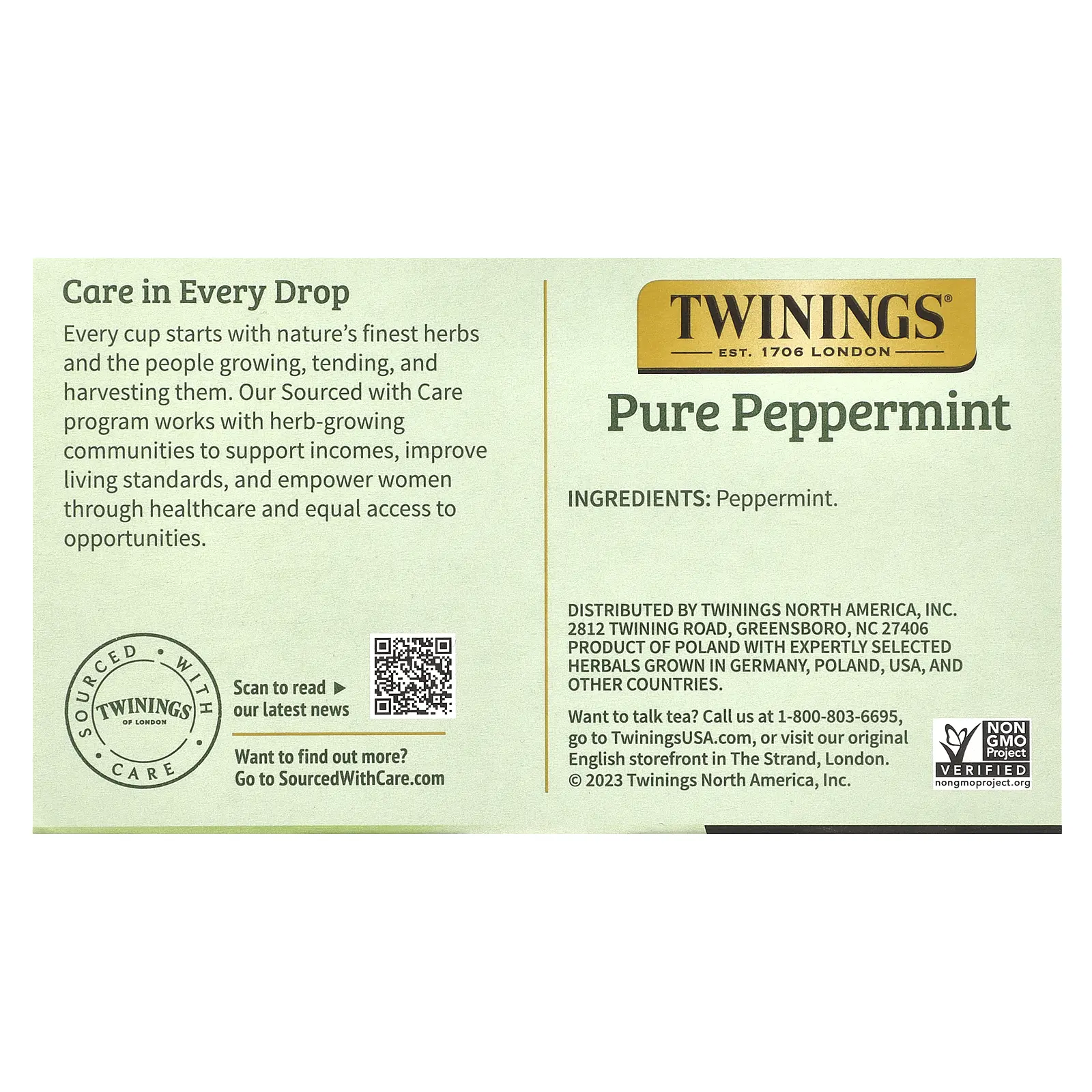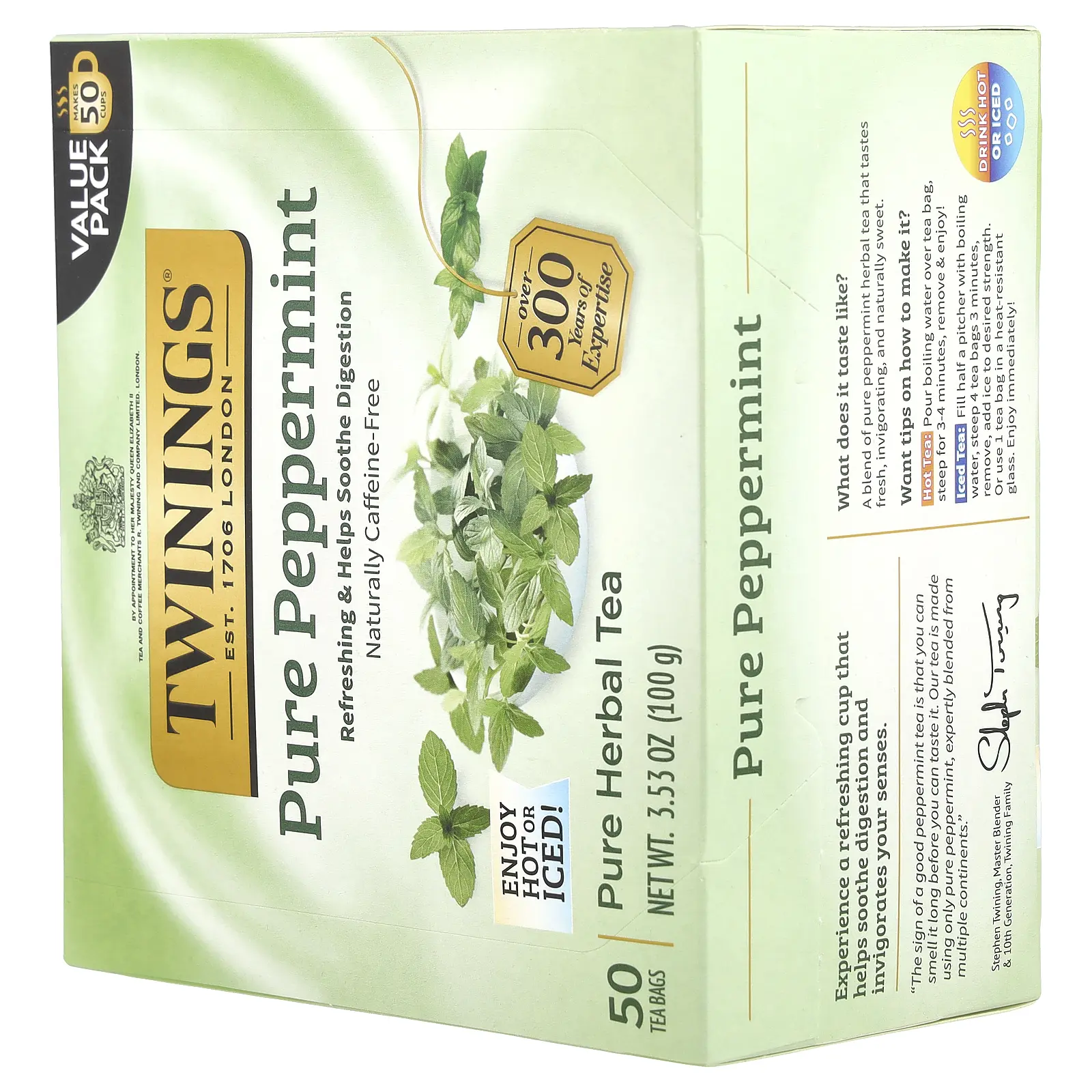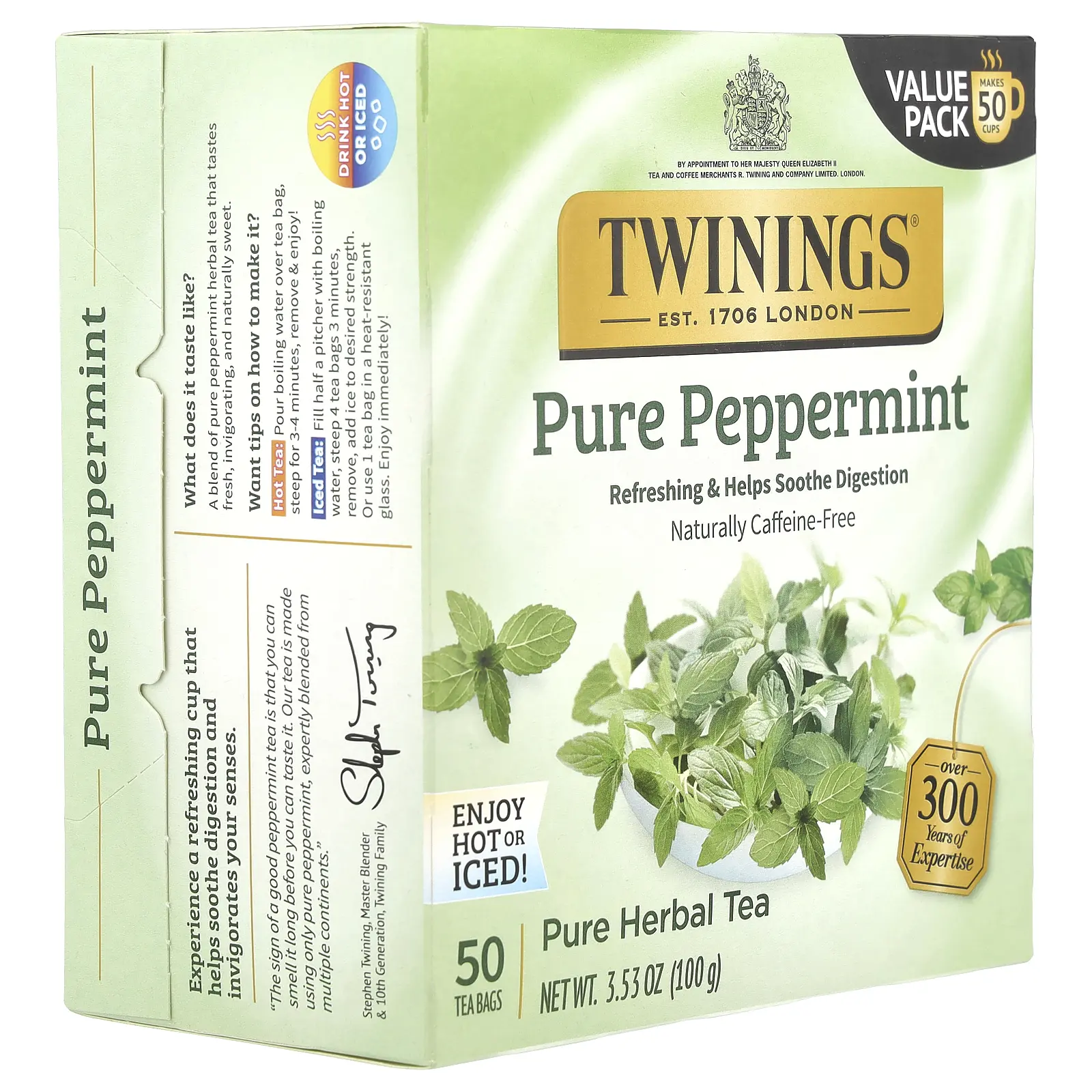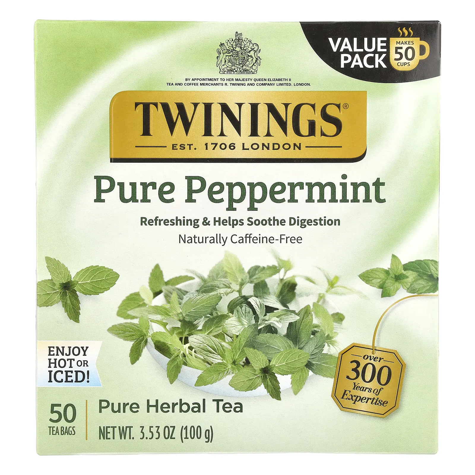 5. Twinings Pure Herbal Tea, Pure Peppermint, Caffeine Free, 50 Tea Bags, 3.53 oz (100 g)