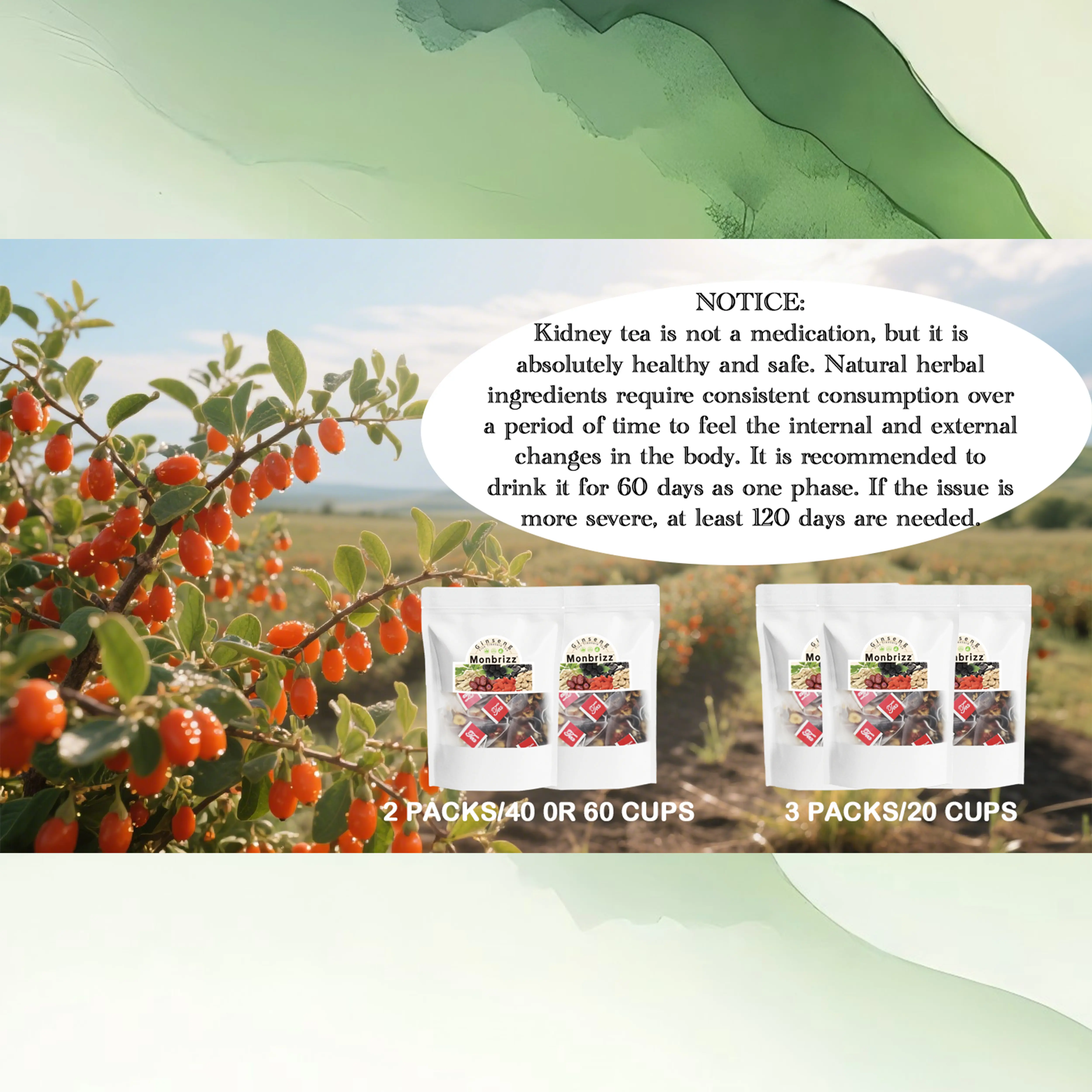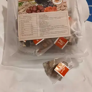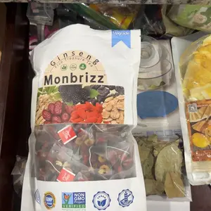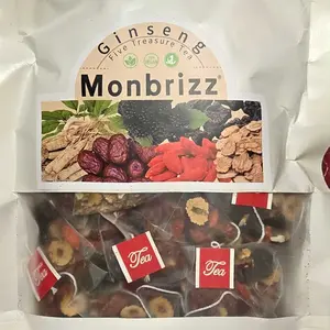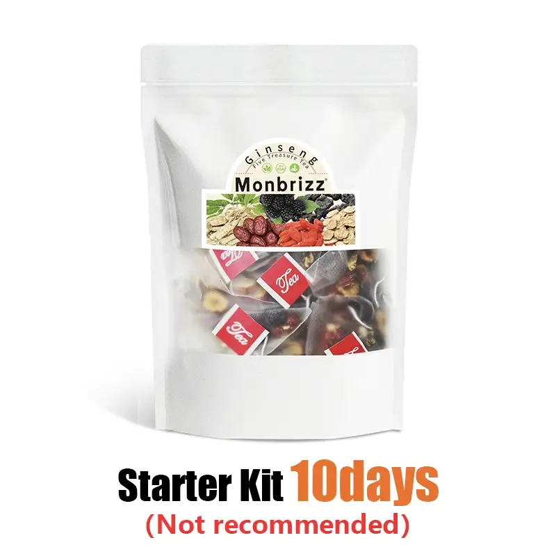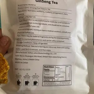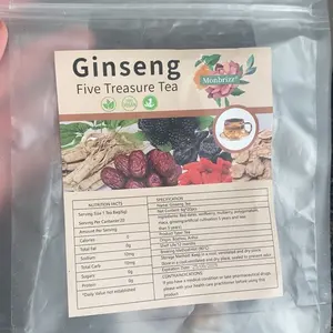 Select Quality IngredientsGinseng Five Treasure Tea is carefully crafted frompremium ingredients including ginseng, red dates, driedmaca tablets, wolfberry, mulberry, and polygonatumsibiricum. These ingredients are meticulously selected toensure superor nourishment and health benefits.providing comprehensive support for your well-being.