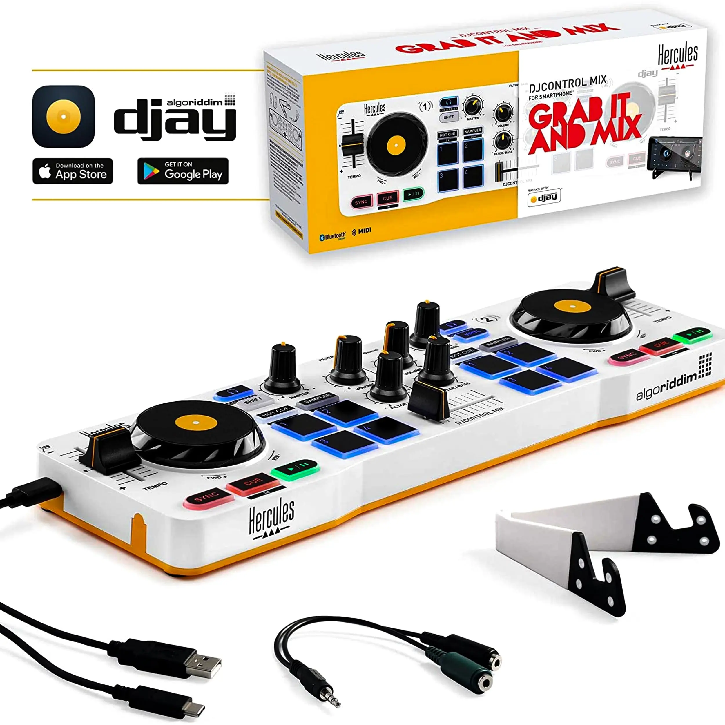 Hercules reveals very first DJ controller designed for smartphones to help to mix, create mash-ups and scratch. The handheld DJControl Mix slips into a backpack to go anywhere. Unleash your creativity, hit the top trending videos, or become the pop-up DJ at a small gathering house party. The DJControl Mix is powered by an external battery or USB power supply, and connects to the free Algoriddim djay app using Bluetooth Low Energy. It’s easy to mix anytime, anywhere!