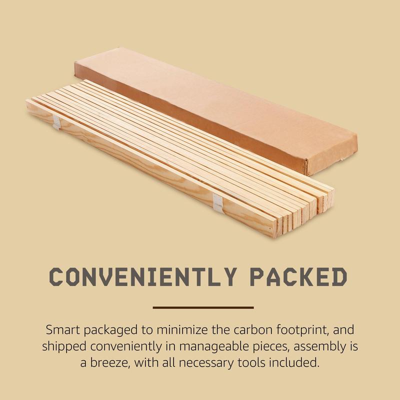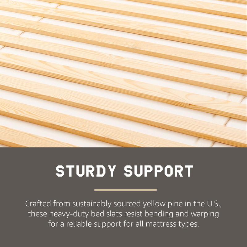 Wood slats are crafted from durable solid Southern Yellow Pine, and work with any mattress type for convenience and versatility
