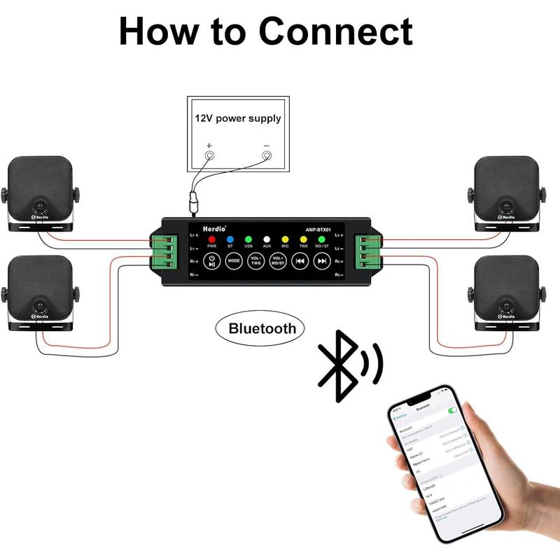【Advanced Waterproof】Featuring 4 or 2 Bluetooth speakers with an ip66 waterproof rating, the marine-grade material allows your speakers to withstand a lot of splashing and sun damage.
