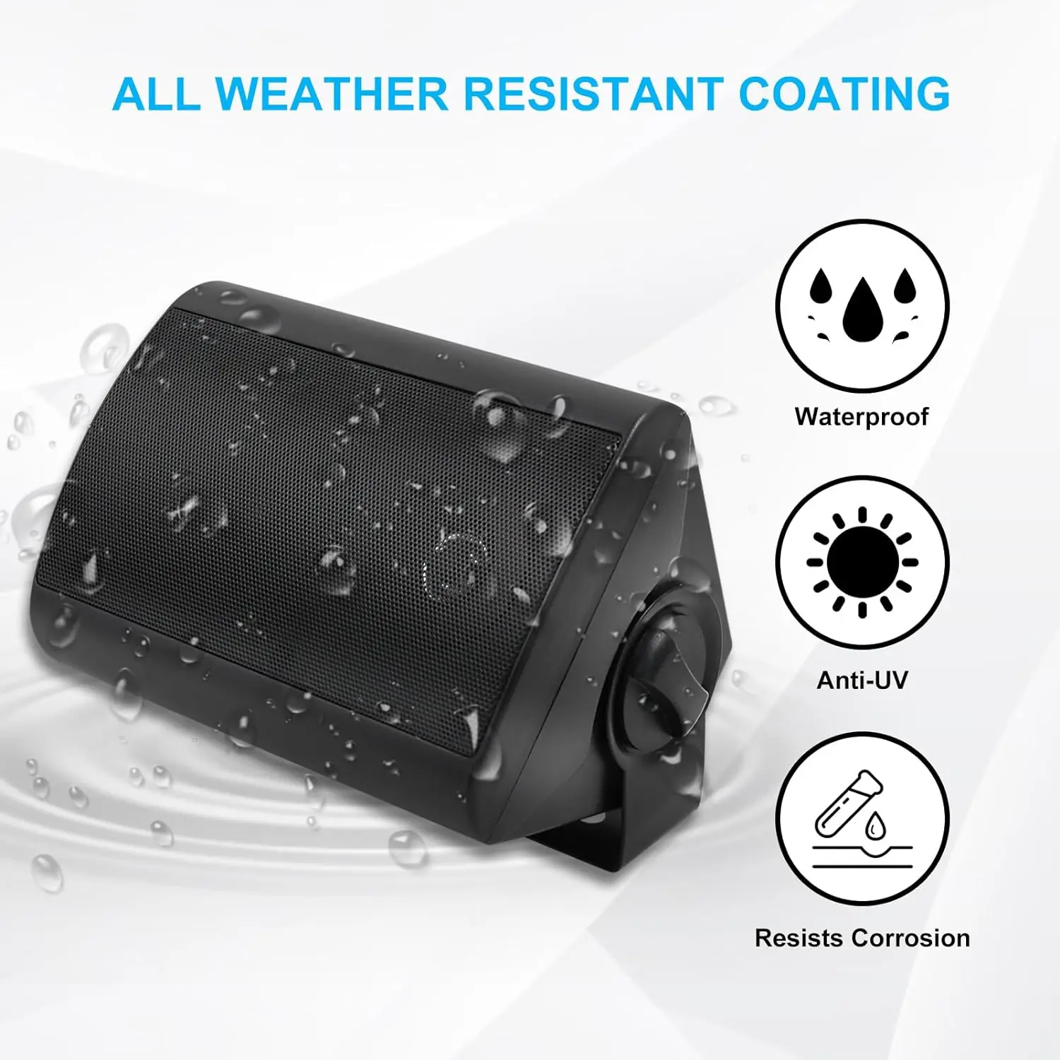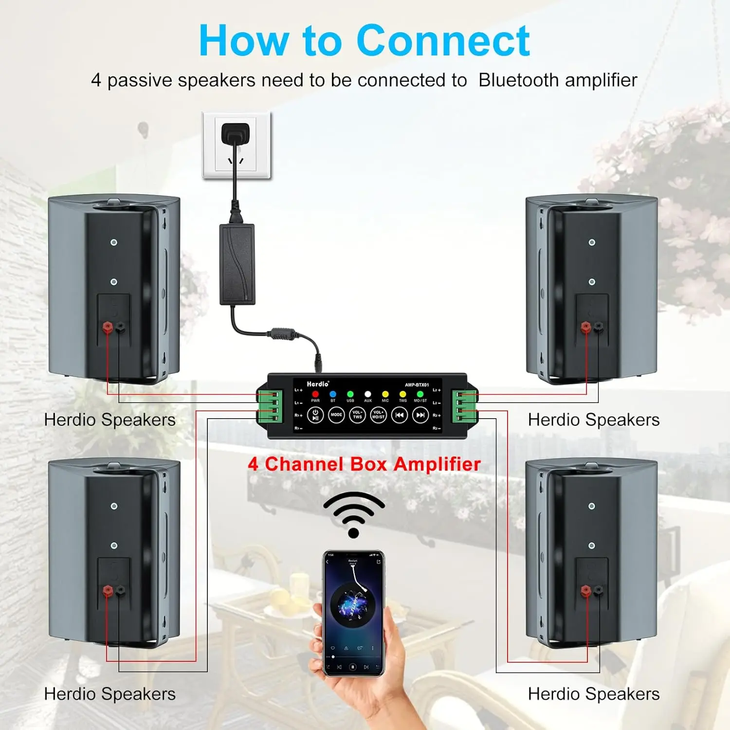 STABLE SIGNAL & ADVANCED BLUETOOTH AMPLIFIER】Includes 4 passive outdoor speakers with individual amplifiers. Bluetooth 5.0 technology provides a greater wireless range of 65 feet and efficiently connects with any Bluetooth device, perfect for outdoor/indoor use.