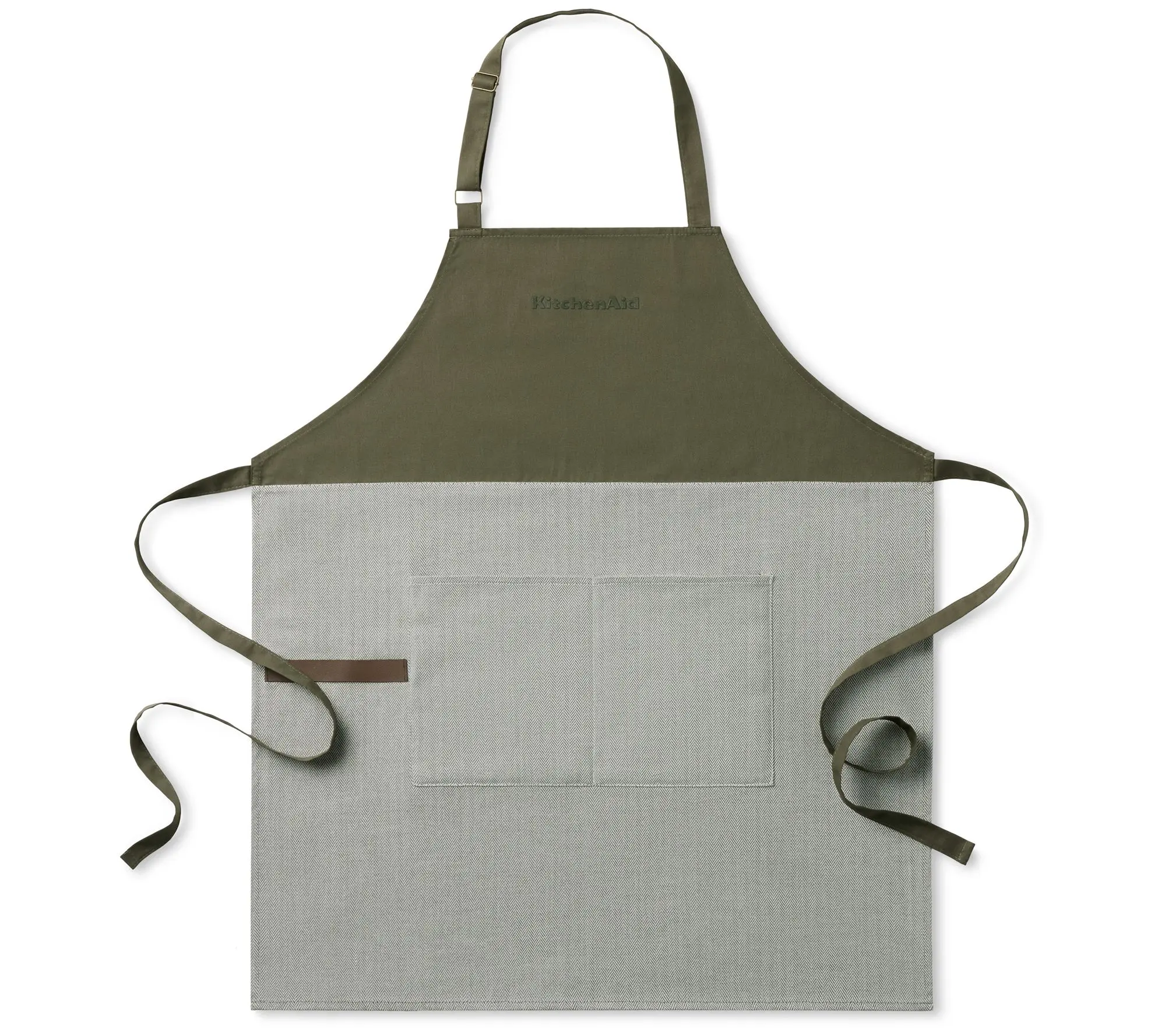 Cooking just got more stylish with the KitchenAid Evergreen Design Series Herringbone Apron. This cotton apron features adjustable straps for a comfortable fit and large front pockets to keep your essentials within reach as you cook or bake. From KitchenAid.