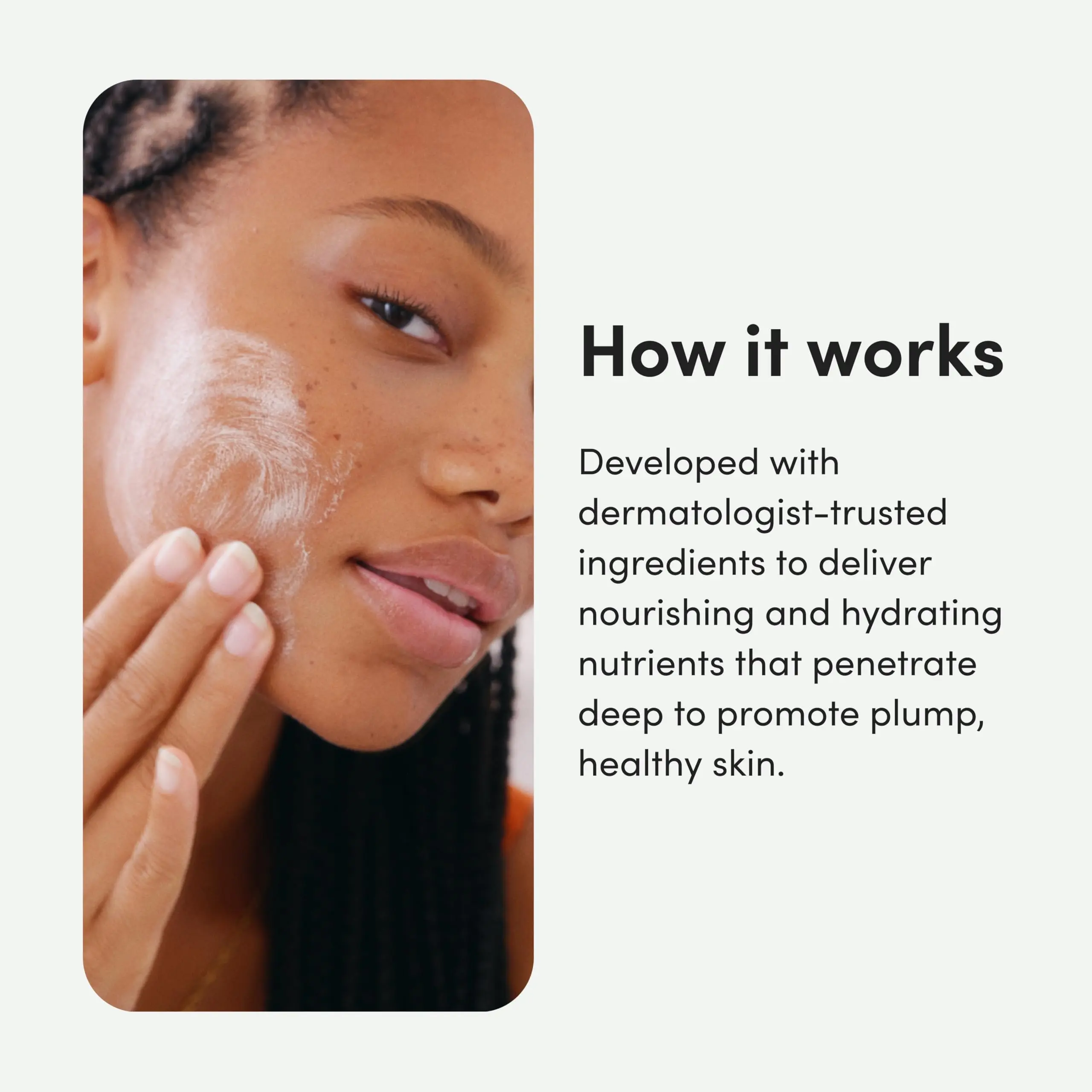 ·Plumps & Smooths: Dermatologist-trusted ingredients that deeply nourish and hydrate. Hyaluronic acid helps skin retain moisture, which reduces the appearance of fine lines and wrinkles and promotes plump, healthy skin