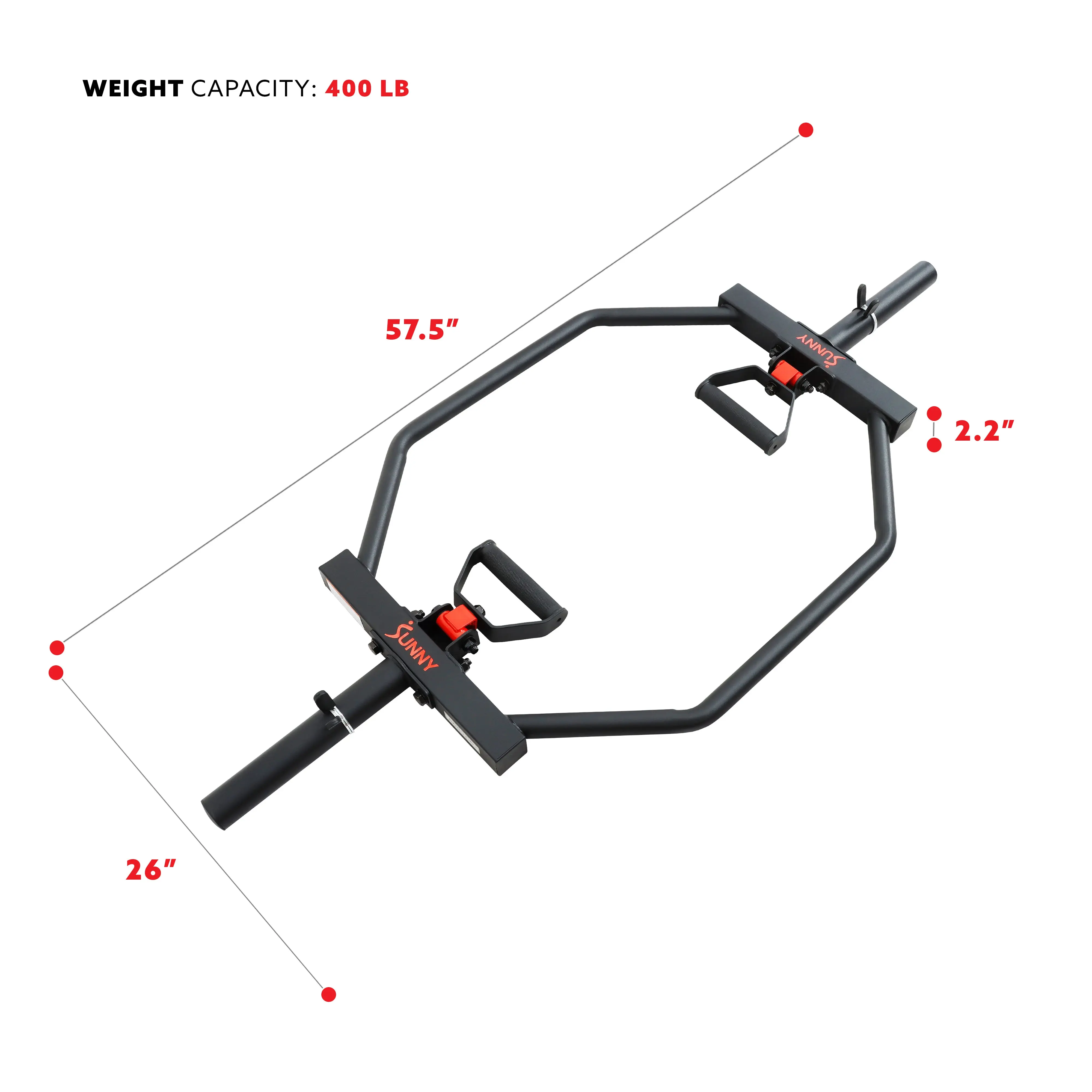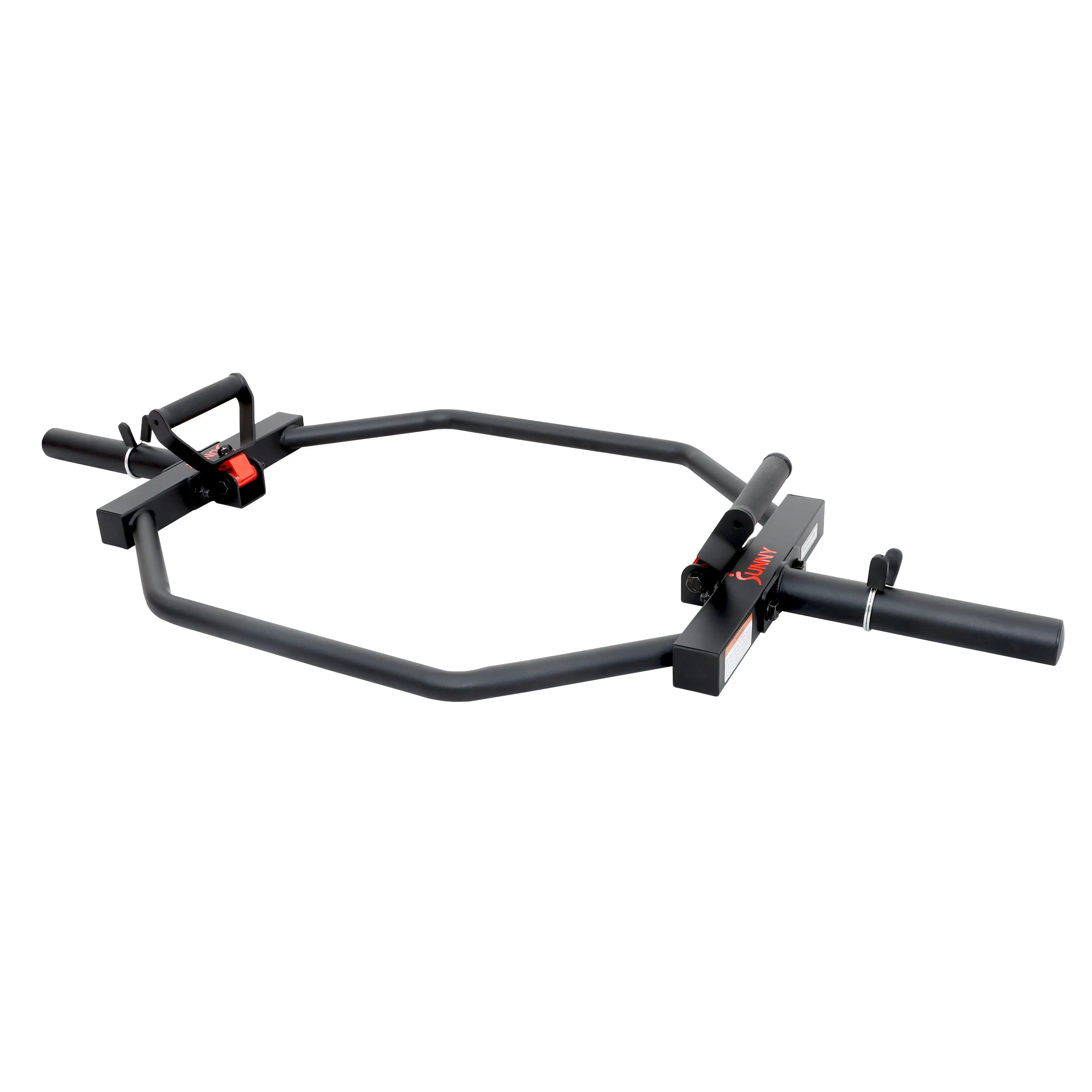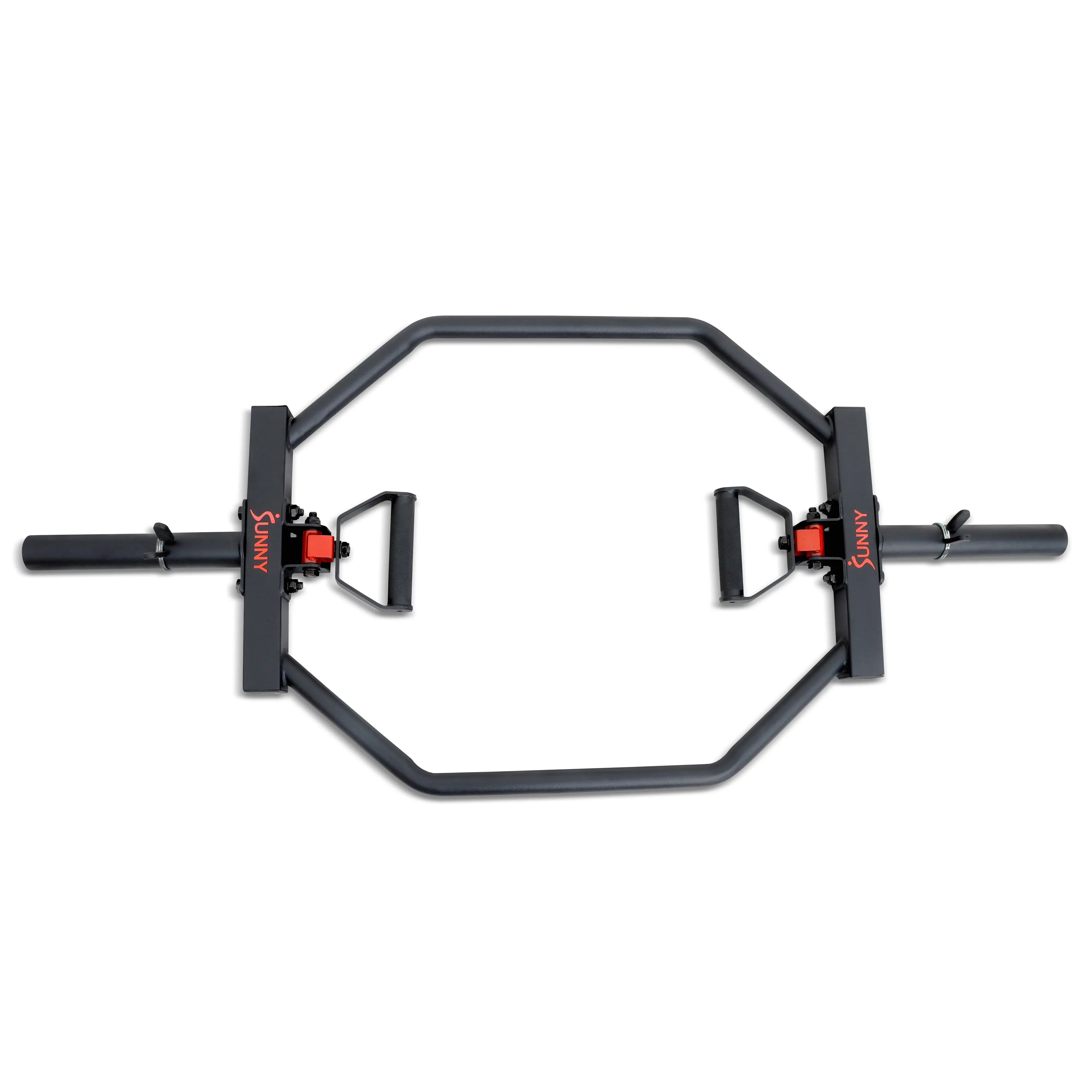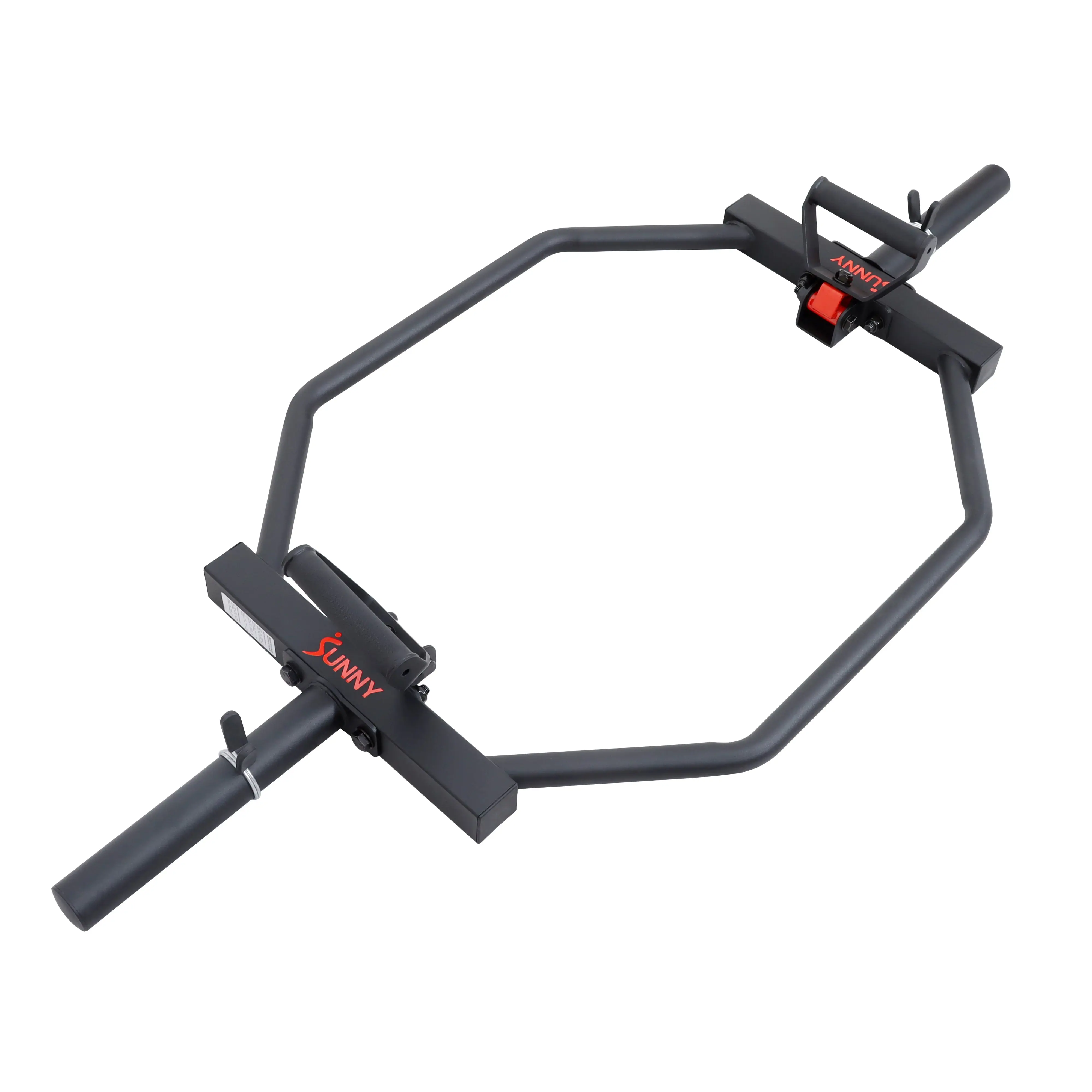 The SUNNY Olympic Hex Trap Bar is a versatile and functional barbell for home gym workouts. It offers high load capacity, unique swivel handles, safety clips, and a knurled patterned grip for comfort and stability. It is also environmentally friendly, packaged with resource-efficient materials.