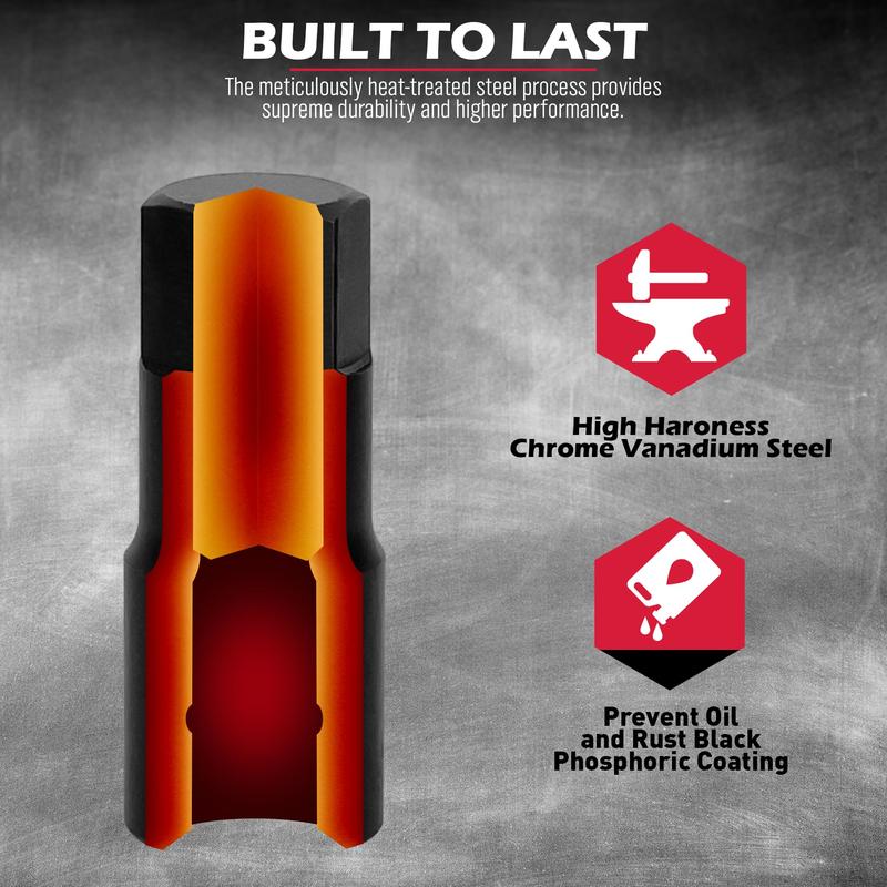 DURABLE MATERIAL - Forged from Cr-V steel, this set ensures high torque performance and corrosion resistance. Blackened manganese phosphate finish prevents rust and extends service life, making it perfect for heavy-duty use.
