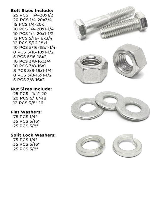 574 Pieces - Coarse Thread 18-8 (304) Stainless Steel Hex Head Cap Screws, Hex Nuts, Washers, and Lock Washers