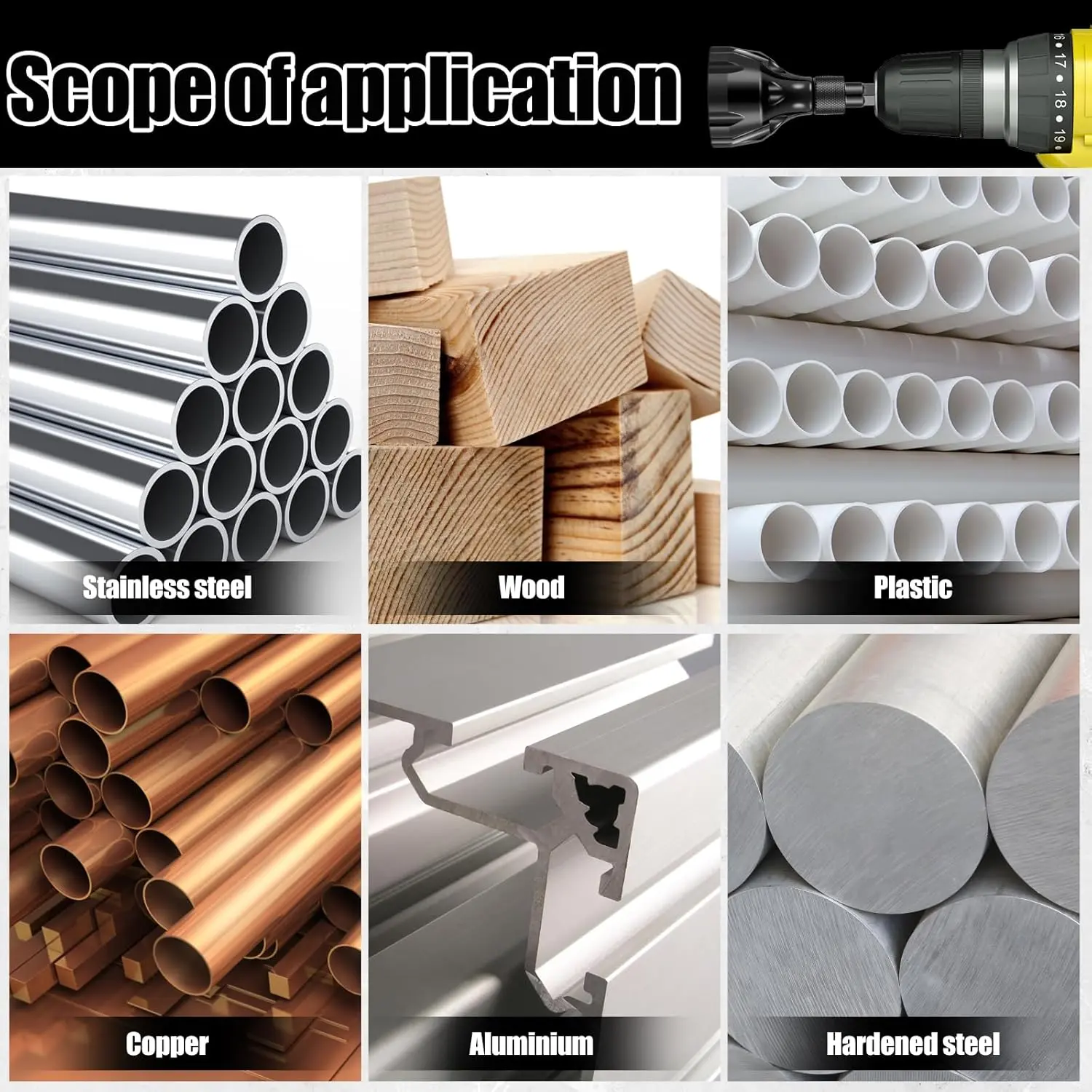 ·Quick-Release Hex Shank & Universal Compatibility – Fits most drills (cordless/electric) with a 1/4" hex shank. Effortlessly switch between projects without downtime