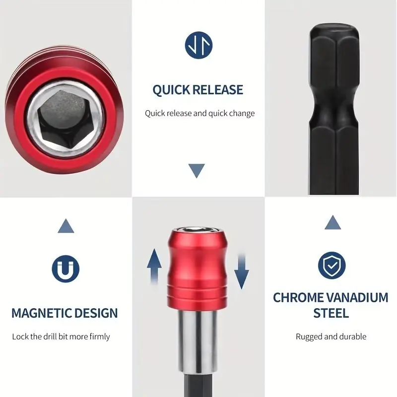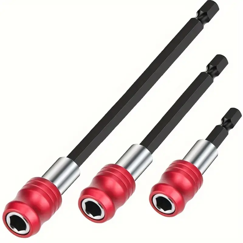 3-piece set of hexagonal handle red quick release self-locking extension rod 60/100/150mm screwdriver head extension rod Hand Tools