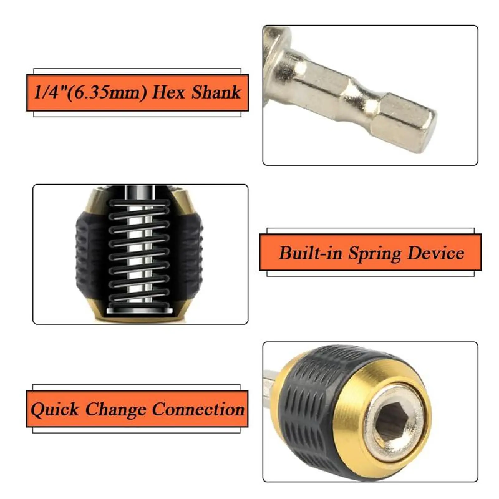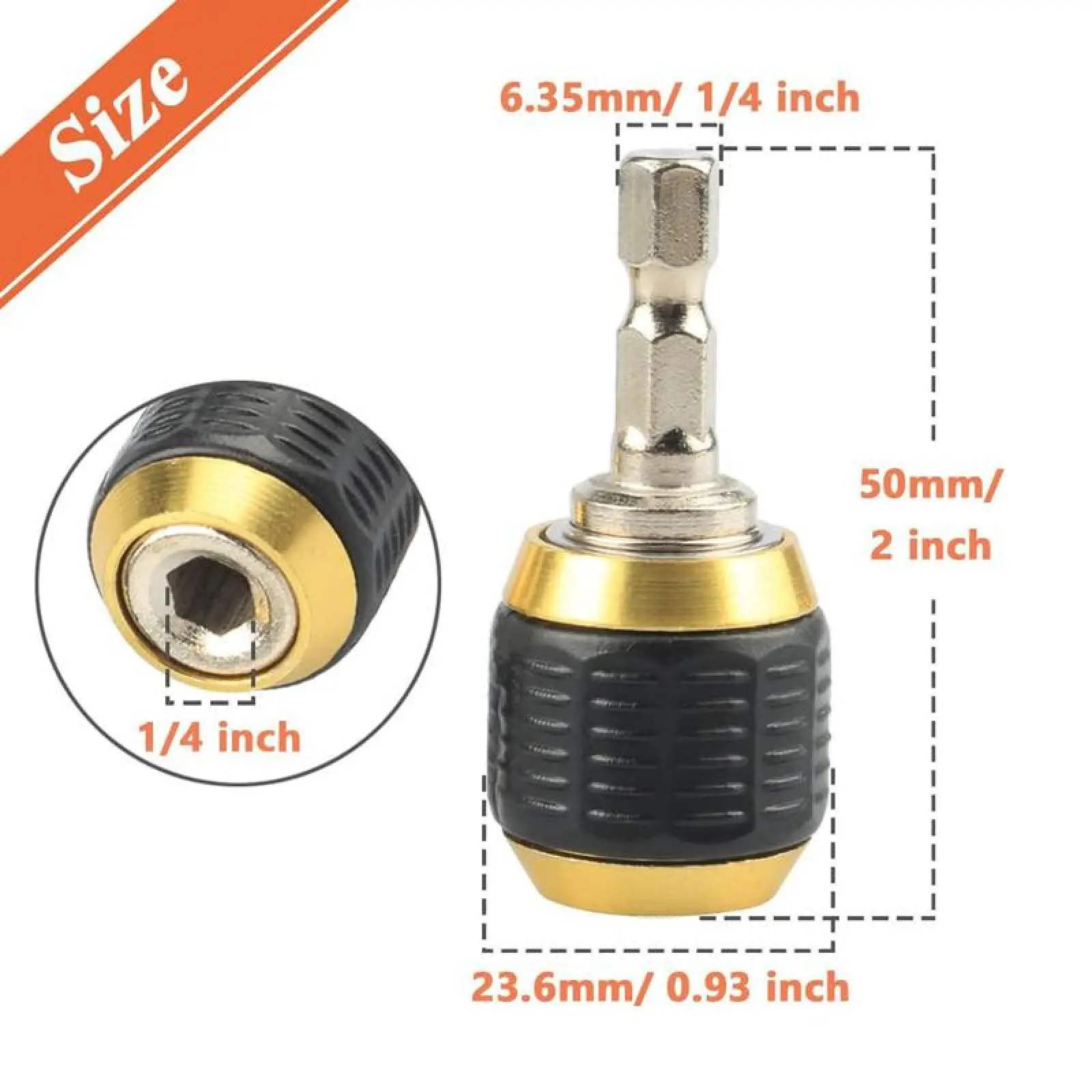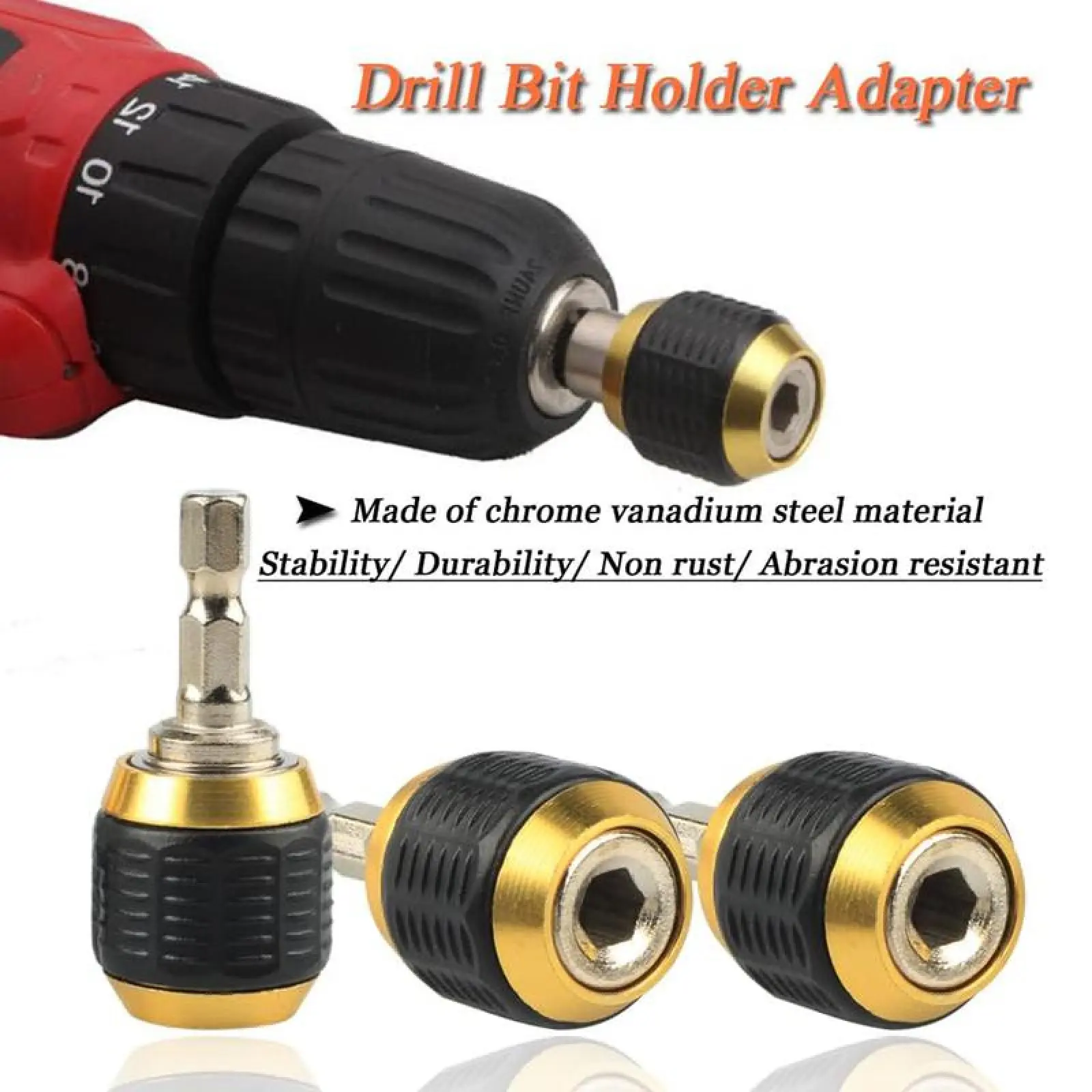 Hexagonal Shank Quick Coupling, Fit power drills chuck, 1/4" impact drivers and hand-held drivers.Used for screwdriver bits, drill, batch head and other tools for the conversion.