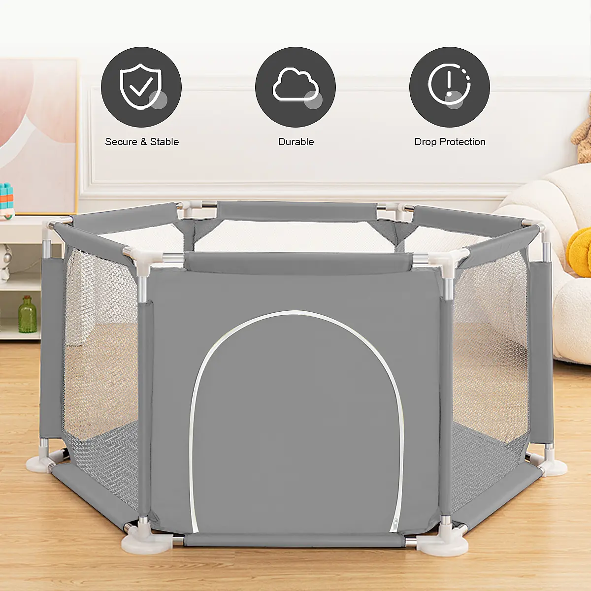 ·The playpen creates a secure space, keeping your baby safe. Watch your baby play while you work or do housework. Enjoy your time! 🌟