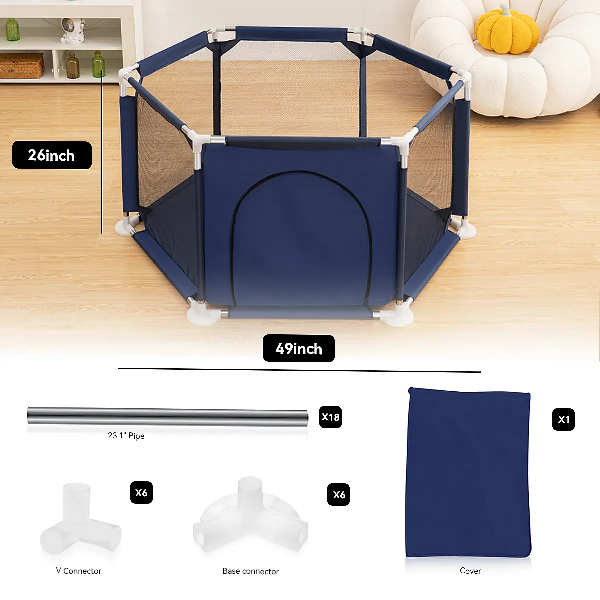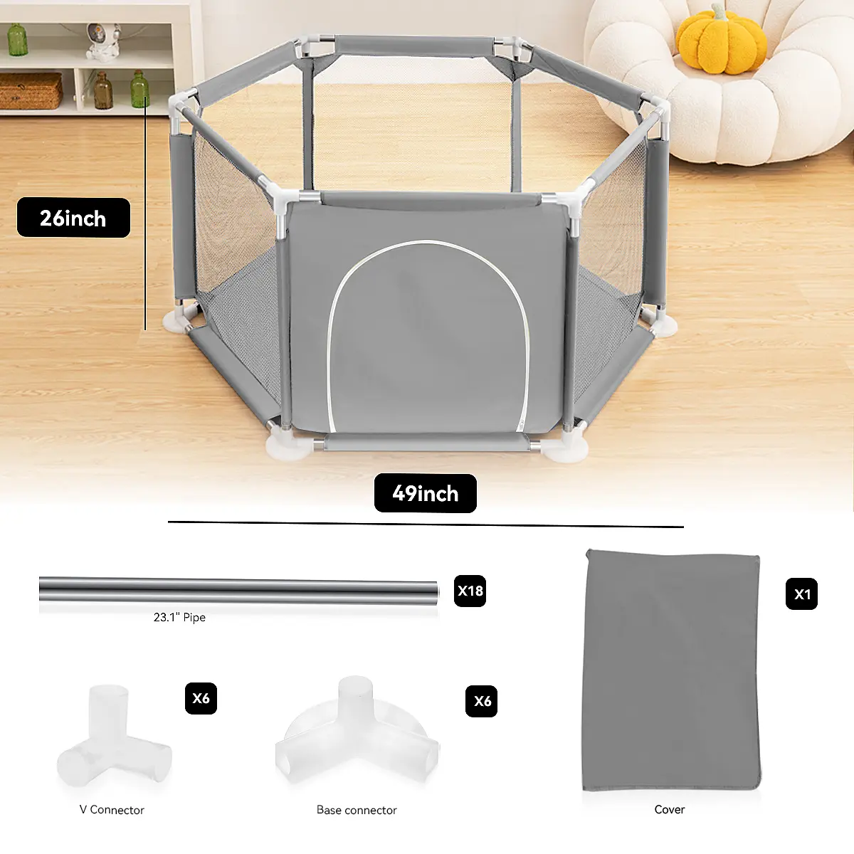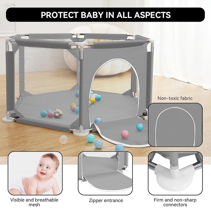5. Hexagon Baby Playpen, Breathable Mesh Indoor/Outdoor Playard - Sturdy 6-Sided Safety Fence for Toddlers, Versatile Fun Zone for Play & Nap Time