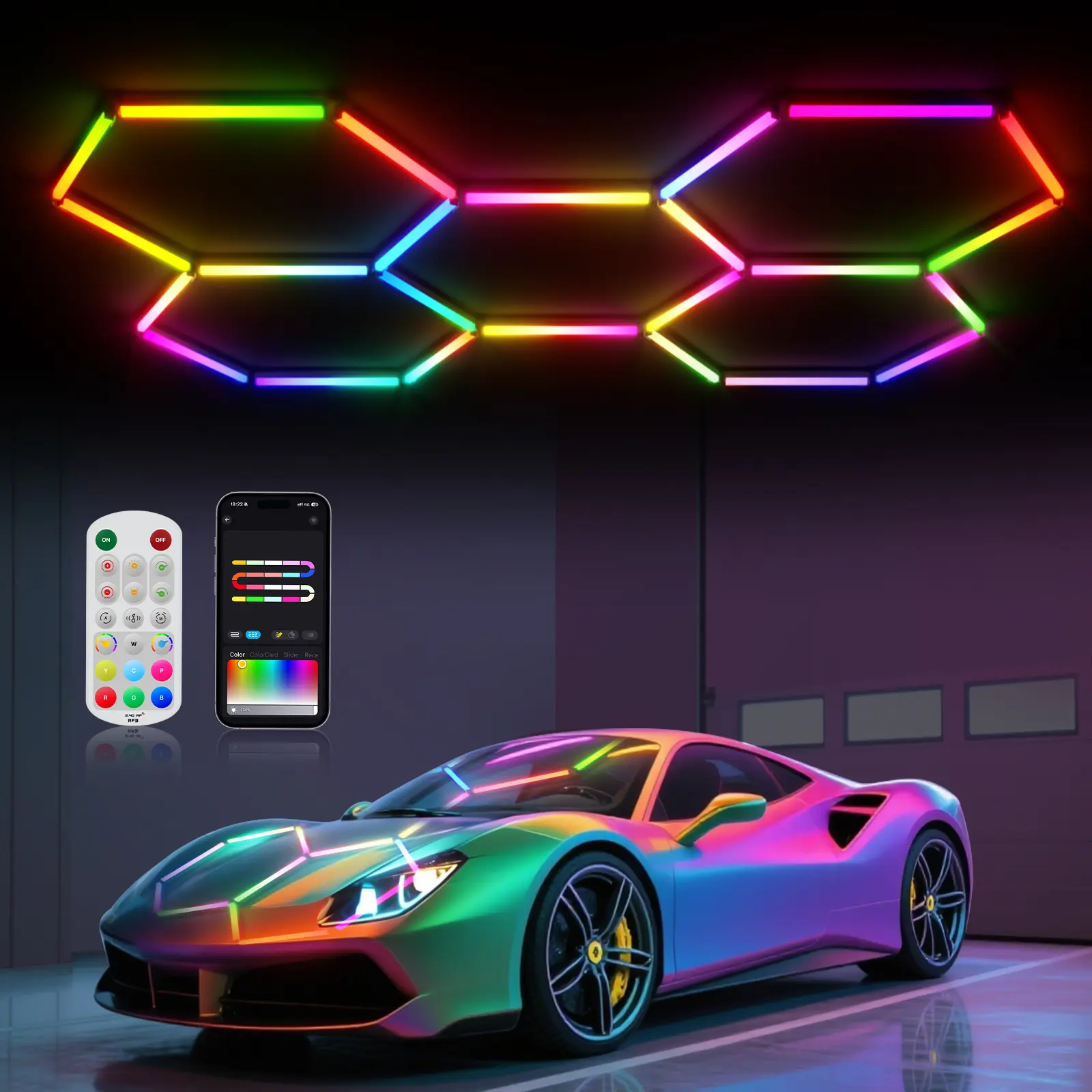 Dynamic RGB Lighting Modes: Features 30+ dynamic effects, 8 music-sync modes that respond to sound, and 13 DIY colors to create your personalized RGB wall light setup. Perfect for gaming, streaming, parties, or garage lighting. Smart App & Remote Control: Easily control your RGB LED panels via the app or included 2.4G remote. Operates through walls or obstacles, allowing convenient adjustment of colors, brightness, and lighting patterns. Modular & Easy Installation: Lightweight PC panels can be mounted with screws or cable ties. Arrange them in hexagon patterns to customize wall decor and maximize visual impact for your gaming room, garage, or living space. Durable High-Quality Material: Made from high-strength, lightweight PC material, providing long-lasting durability while reducing installation difficulty. Safe, sturdy, and built to last. Versatile Room Ambience: Ideal for bedrooms, gaming setups, streaming rooms, offices, parties, or garages. Creates immersive RGB lighting that enhances mood, focus, and entertainment experiences.